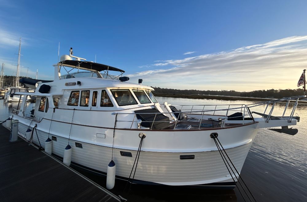 We are delighted to be able to present this well-known local Grand Banks 59 Aleutian RP to the brokerage market. We have all admired TUSK from afar. She is a gracefully woven tapestry of classic lines, muscular stance, fabled sea-keeping and also renown as a longer distance passage-maker. She has regularly stopped by at Berthon in Lymington for an early Spring haul-out, with a Spring-clean and early season maintenance schedule to follow. Here is her 2026 story.
