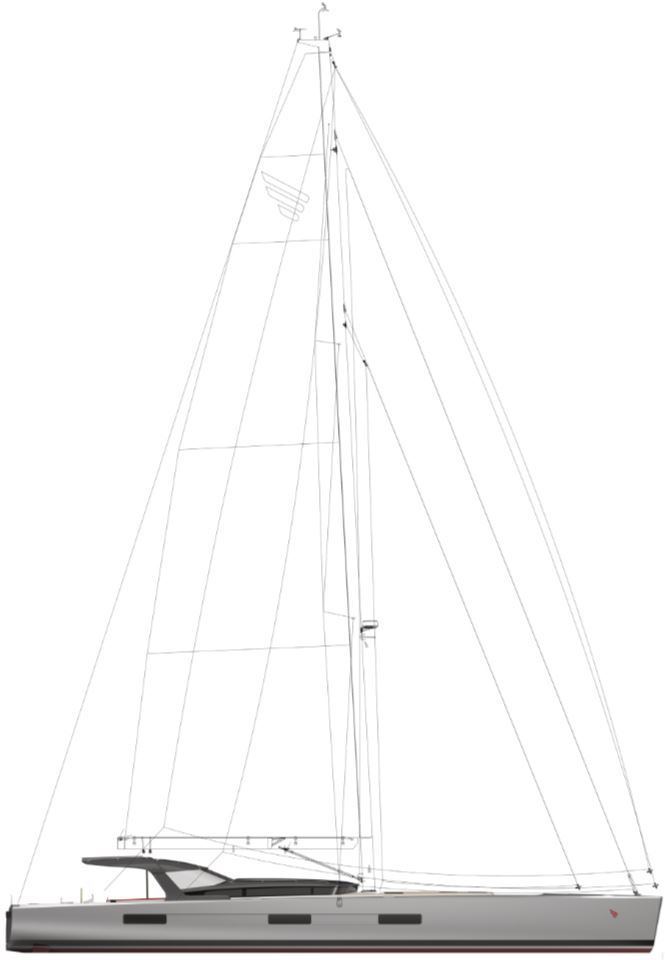 At roughly 20.5 metres (67 ft) long, the yacht sits in the large performance-cruiser category. She has a beam of about 5.6 m and a draft of about 3 m, and thanks to her composite construction as a hybrid of carbon and glass, she has a light displacement of around 21 tonnes, balancing structural strength with relatively low weight for efficient sailing. The ballast ratio is above 30%, and the ocean-going CE Category A rating highlights her offshore focus.