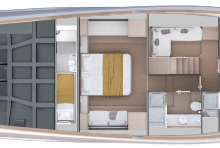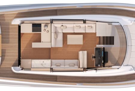At 18.3 meters in length and with a beam of 5.35 meters, the Solaris Power 60 Coupé has impressive volume and a sleek yet commanding presence on the water. Its design is inspired by the elegant and seaworthy East Coast Lobster boats, seamlessly blending strength and charm. The hardtop provides protection from the elements while maintaining the yacht’s stunning lines. The 60 Coupé features top-tier design and engineering, with naval architect Brunello Acampora and the Solaris Power team ensuring superior seaworthiness and an exceptional cruising experience.