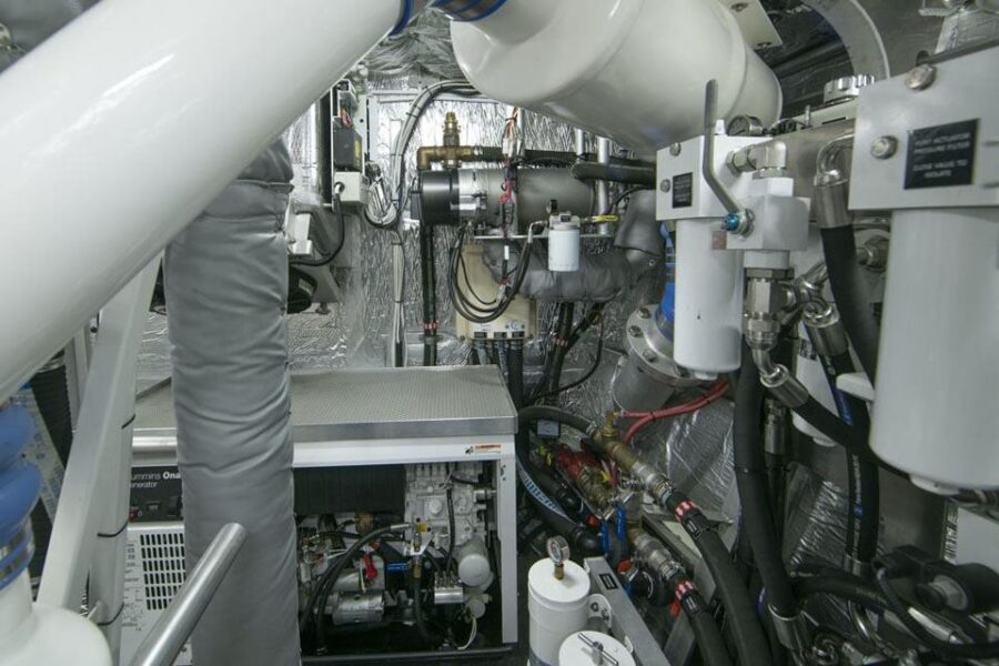 At 86 feet overall, they can be managed by a couple, but for longer voyages owners prefer to take advantage of their ample accommodation to take crew with them. There is plenty of volume for separate crew accommodation aft of the engine room which is the width of the yacht.