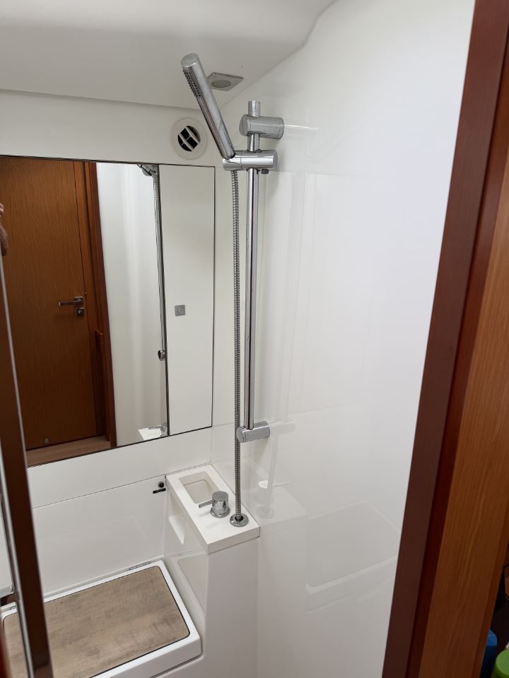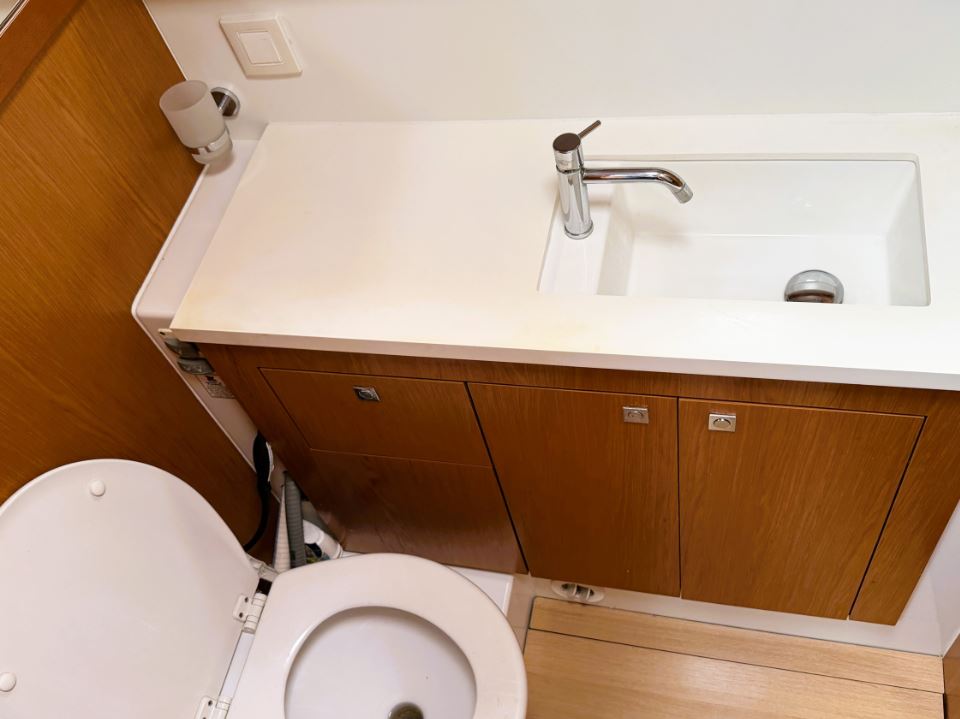 Below, the Sense 55 offers a generous three-cabin, three-head layout, with a luxurious forward owner’s suite with an ensuite head and separate shower, two spacious guest cabins with ensuite heads and abundant light and ventilation, and a bright saloon with panoramic windows and a large galley to starboard. Quality joinery, contemporary finishes, and extensive natural light give the interior a sophisticated atmosphere ideal for extended cruising, liveaboard comfort, or entertaining.