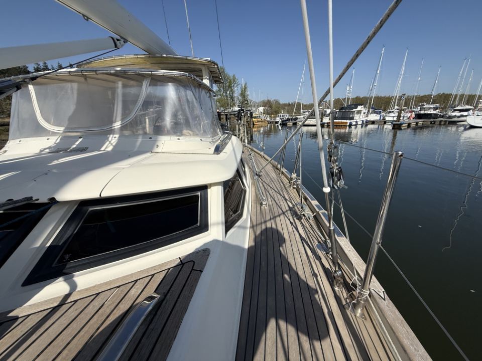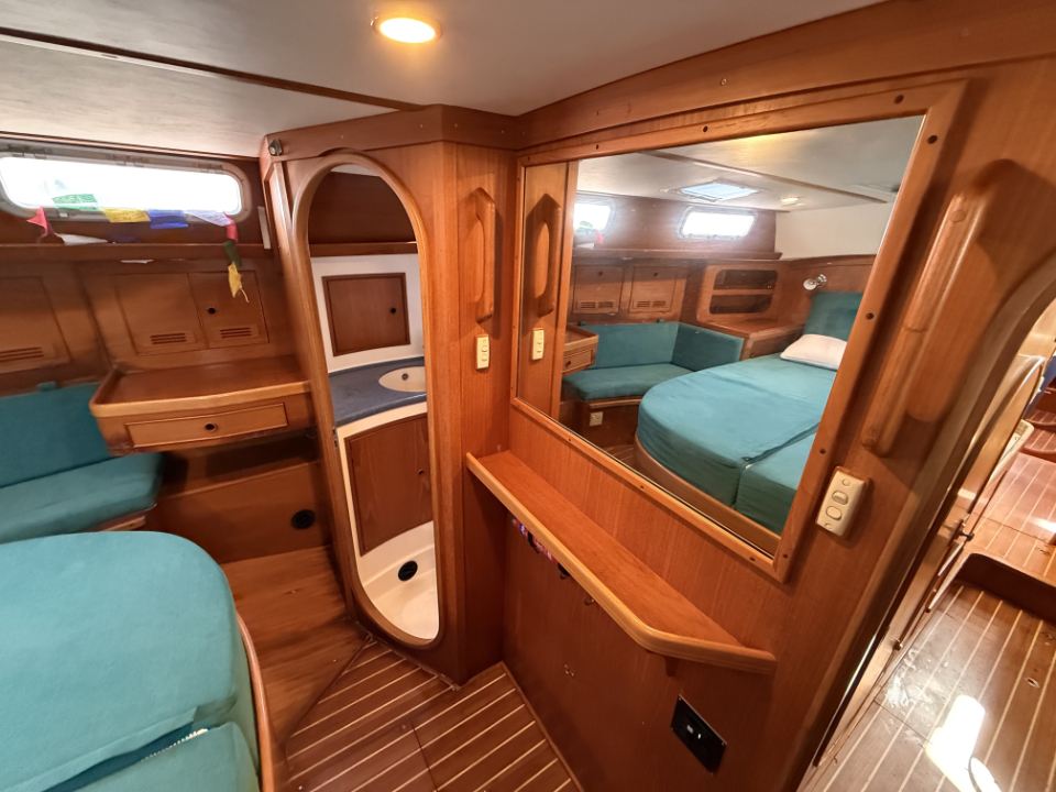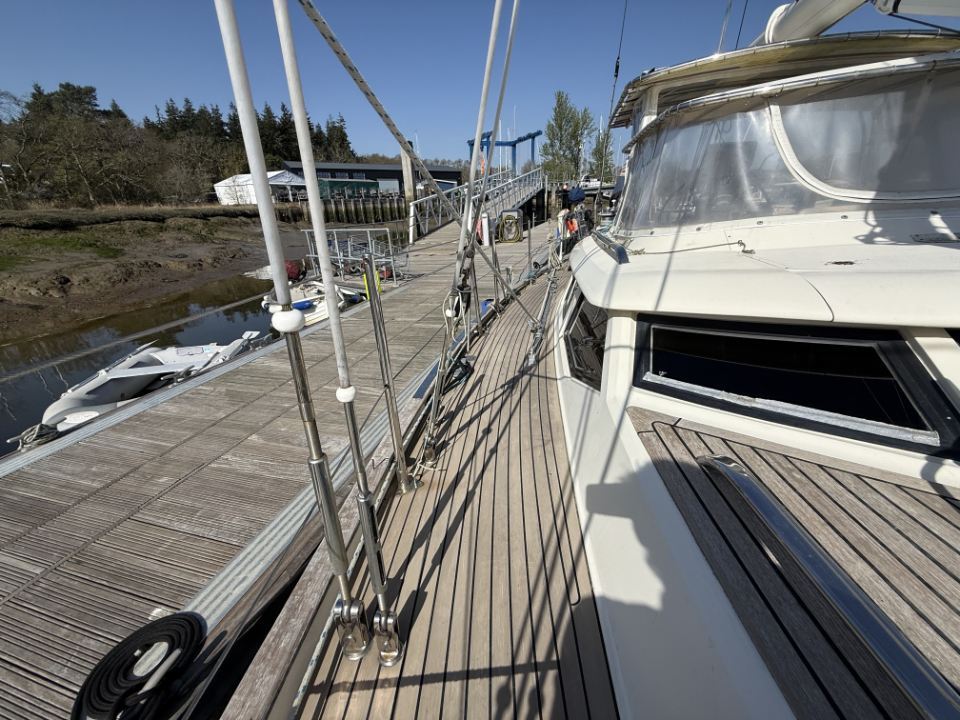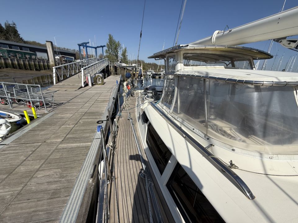 The current owners purchased her in 2021, fresh from a comprehensive programme of works that included new Flexiteak decking and Lewmar electric windlass. Since then, she has had more recent work with notable improvements including new stainless standing rigging (2024), a hydraulic linear drive unit (2025), a new air-cooled fridge system (2025) and a new blackwater pump (2025).