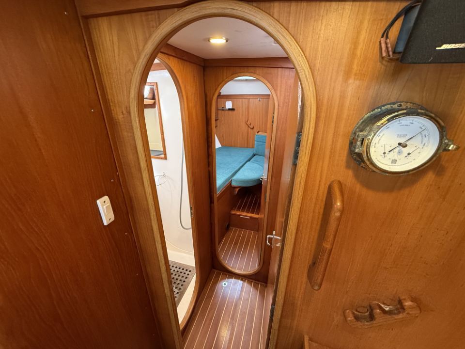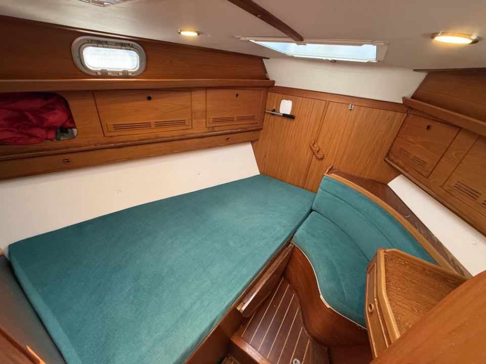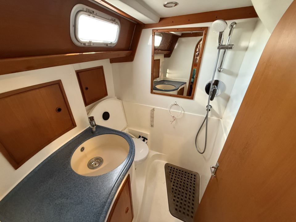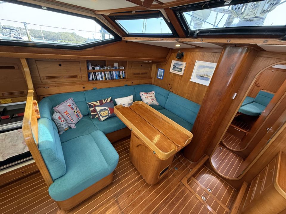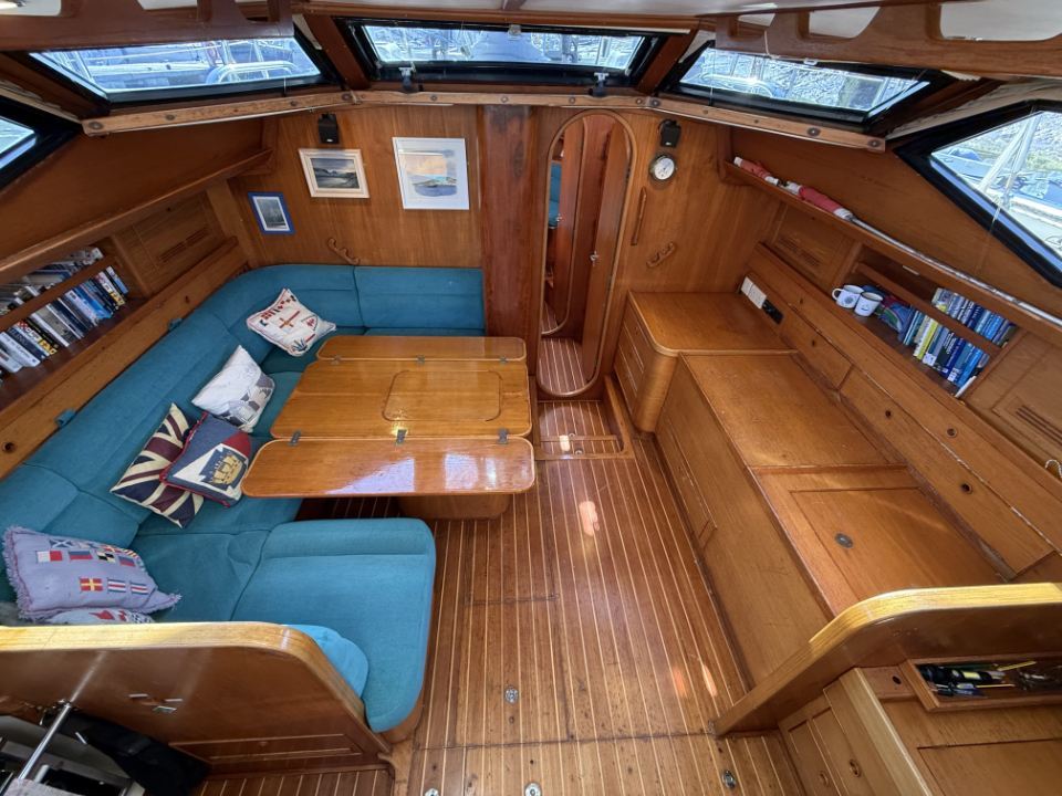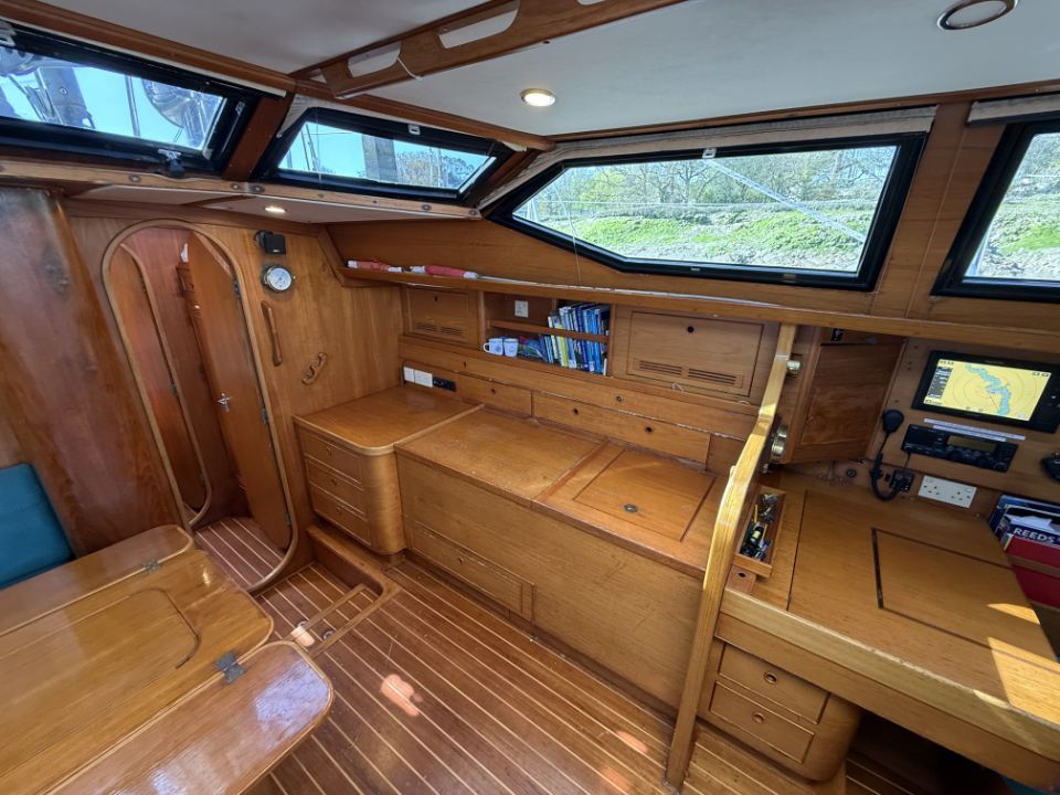Circumstances mean that we shall not be able to use her very much over the next few years, so we are looking for a new owner to make the best of her comfortable sea-kindly capability. We have powered through two days of force 6-8 on the nose down the Irish and Celtic seas and enjoyed champagne sailing up the channel all with equal lack of concern for the conditions. We have squeezed into a berth with a mere 6 inches fore and aft to spare, anchored in obscure holes in the Scilly’s and generally handled her as a small boat, and loved every moment. Whatever the new owner chooses to do we only ask that they make good use of her.