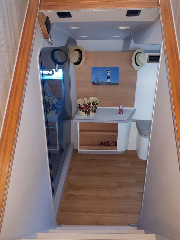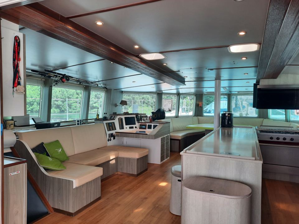 Of recent build, she is ready for more adventures. Her strong aluminium build means that she is extremely robust. She is also very well insulated and she has watertight bulkheads separating the engine spaces.