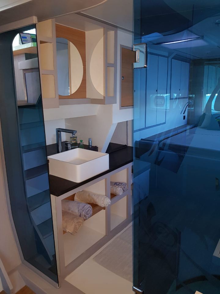 There are 4 double guest cabins, all ensuite as well as two crew cabins and a large main saloon. PRINCESSE ADVENTURE has a large aft cockpit and a spacious flybridge also.