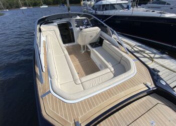 The Italians add flair to their boats that others seem to miss, and the Breva 35 by Comitti is a stunning example of this truism. Comitti has been crafting spectacular launches since 1956 on the southern shore of Lake Como, just outside Como itself. They still craft a full mahogany runabout, following the tradition of the Riva company in Sarnico, based on the shores of the neighboring Lake Iseo. Comitti Boats are dedicated to delivering sumptuously finished yachts of jewel-like quality. They feature a sharply vee’d monohedral hull to optimize sea-keeping and handling in more broken water—a feature that is sometimes missing in other ‘lake boats.’