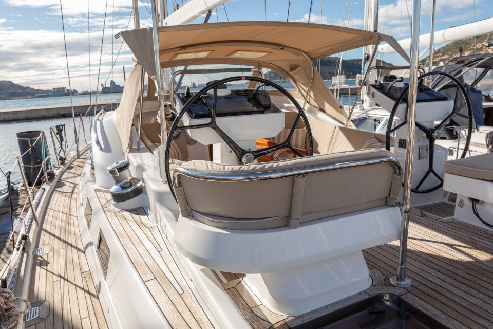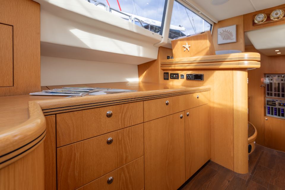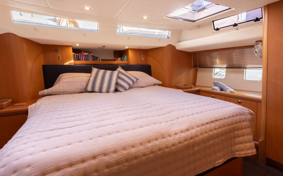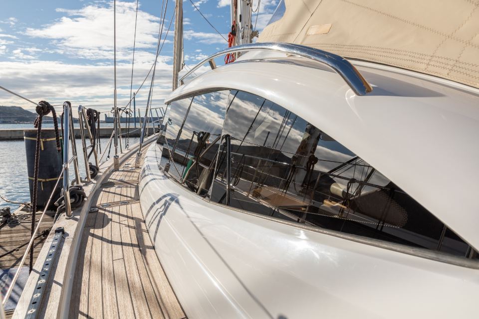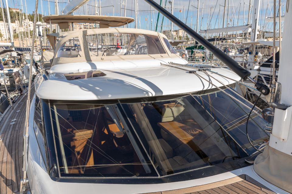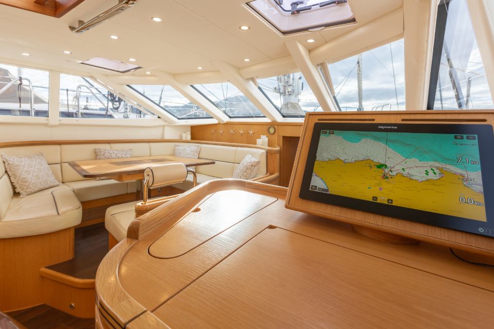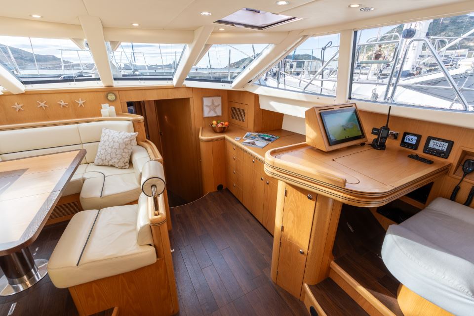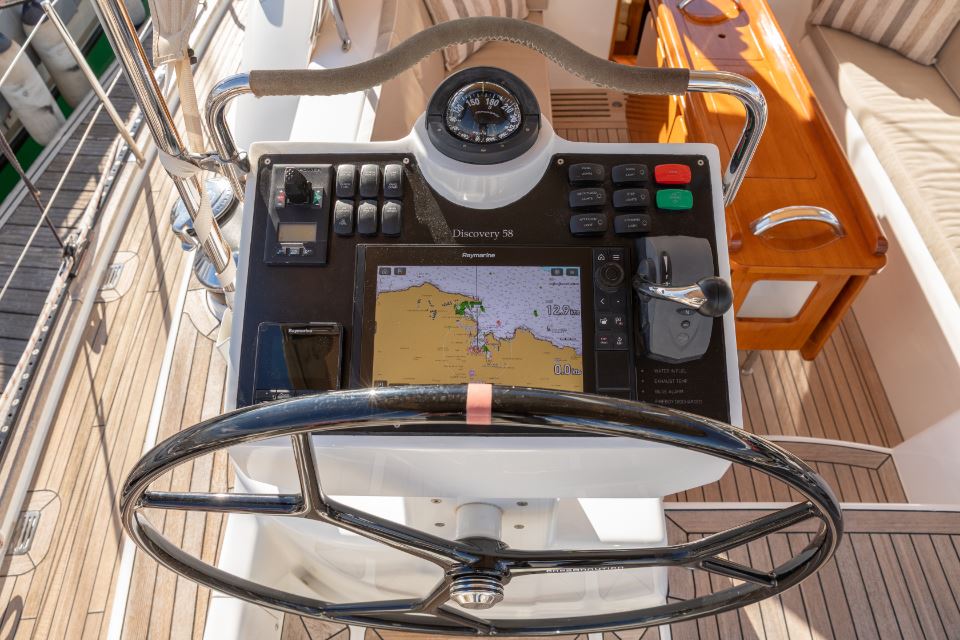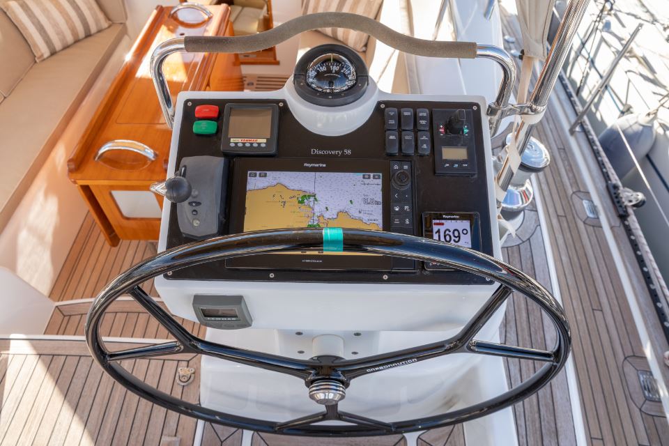 When a 58 unexpectedly appeared on the market in Mallorca I wasted no time in getting to Palma. From the moment I set eyes on her, I knew that LUNA was the yacht that I had been searching for. She was by some margin the cleanest and best presented Discovery that I had viewed. She is an exceptional yacht and absolutely gleams from stem to stern thanks to the meticulous attention of her previous owners. She was perfect for me in all respects and only needed a few minor upgrades to bring her fully up to spec. I have invested in all new house batteries, new bow thruster batteries, additional flexible solar panels (now a total of four), a new Quantum radar, updated safety equipment, classy Sunbrella cockpit cushions and a costly fully enclosed aft cockpit enclosure which includes clear screens all around the twin helm positions. This makes sailing in all weather conditions entirely safe and comfortable.