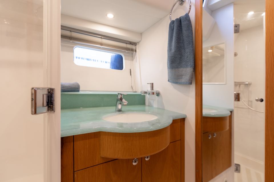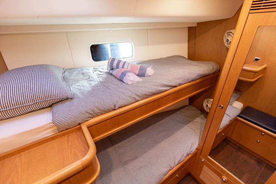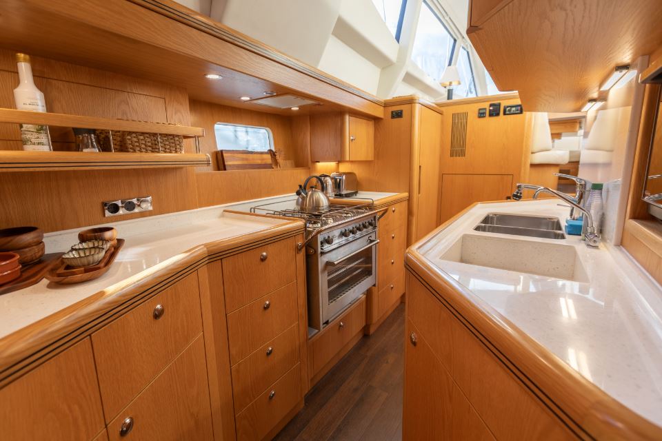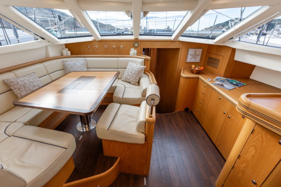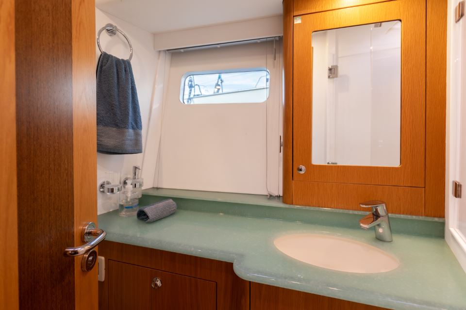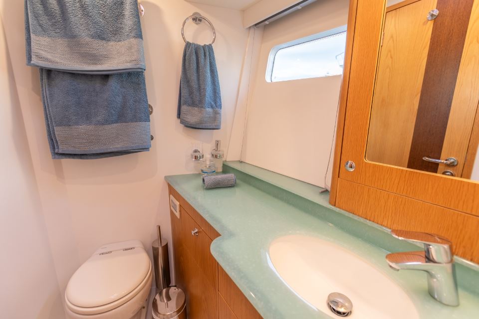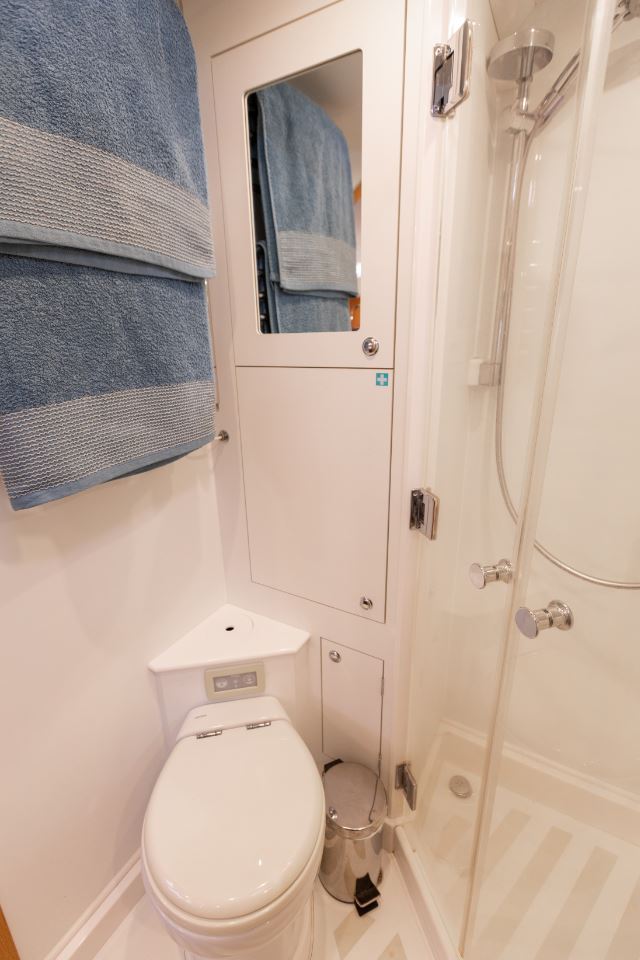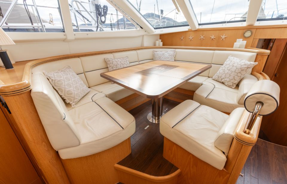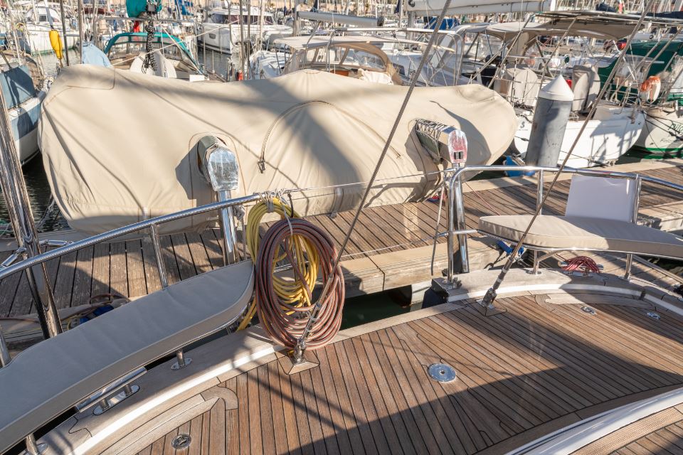 When a 58 unexpectedly appeared on the market in Mallorca I wasted no time in getting to Palma. From the moment I set eyes on her, I knew that LUNA was the yacht that I had been searching for. She was by some margin the cleanest and best presented Discovery that I had viewed. She is an exceptional yacht and absolutely gleams from stem to stern thanks to the meticulous attention of her previous owners. She was perfect for me in all respects and only needed a few minor upgrades to bring her fully up to spec. I have invested in all new house batteries, new bow thruster batteries, additional flexible solar panels (now a total of four), a new Quantum radar, updated safety equipment, classy Sunbrella cockpit cushions and a costly fully enclosed aft cockpit enclosure which includes clear screens all around the twin helm positions. This makes sailing in all weather conditions entirely safe and comfortable.