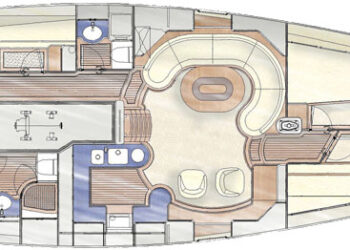 LIARA is a fast yet safe yacht. Thanks to the in-boom furling and the furling genoa, she is easy to trim. Even in a strong mistral she sails as if she was on rails either upwind or downwind. It is no coincidence that she has won the ARC and Antigua Race twice. Thanks to the Parasailor, LIARA is very good-natured on a broad reach or running downwind. With 20 knots of breeze on a close reach, she sails easily at 8 – 10 knots. Under power, LIARA uses approximately 7 litres an hour at 1750 RPM and makes around 7 knots light swell. This is evidence of a good hull design with a well-pitched propeller. Under sail as well as under engine she is easy and straight forward to handle. We have sailed LIARA a lot two handed.