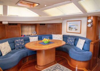 Below decks LIARA has excellent mahogany joinery with the extensive use of burrs and ebony inlays all put together by the craftsmen at Southern Ocean Marine, NZ. Her current owners have fitted lovely mahogany soleboards which brings the whole effect together beautifully. She has a great layout for 8 people including crew as you wish. For short-handed use, she has lots of space and air.