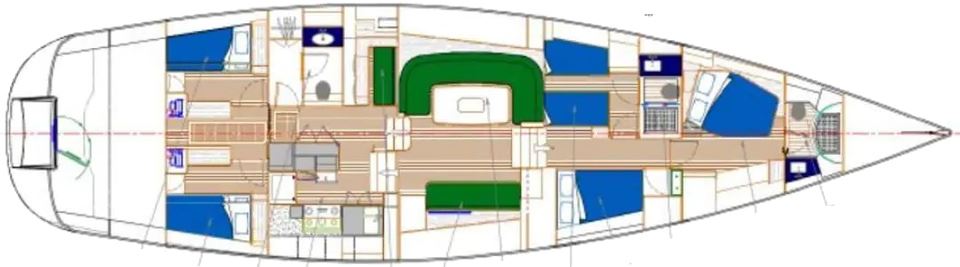 11. Berths: 10 berths in 5 cabin(s) / 3 head/WC(s)