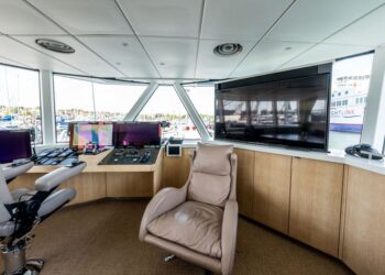 She has a unique Matrix Deck design that features a helm station with dual Stidd chairs (one with built in controls in the arms) that is designed to maintain external situational awareness while optimizing the functionality of modern electronics and monitoring systems.
