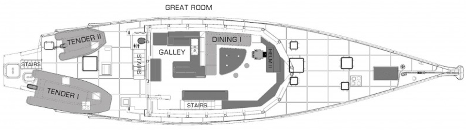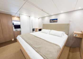 GREY WOLF II’s MCA MGN 280 Category ‘0’, Maritime Labour Convention 2006 classicisation is in date today. It provides her with the ability to charter without limitation worldwide and is not a rule that most explorer yachts can achieve. Because of crewing requirements for MCA, she has a twin cabin forward of the owner’s stateroom plus heads compartment with sink and again the stern behind the engine room. This layout provides her with three guest cabins and two crew cabins. Her two hull sisters have now been altered to provide the same sort of set up as GREY WOLF II. This solution provides flexibility as well as the opportunity to carry crew and to have a fourth cabin for guests as you wish.
