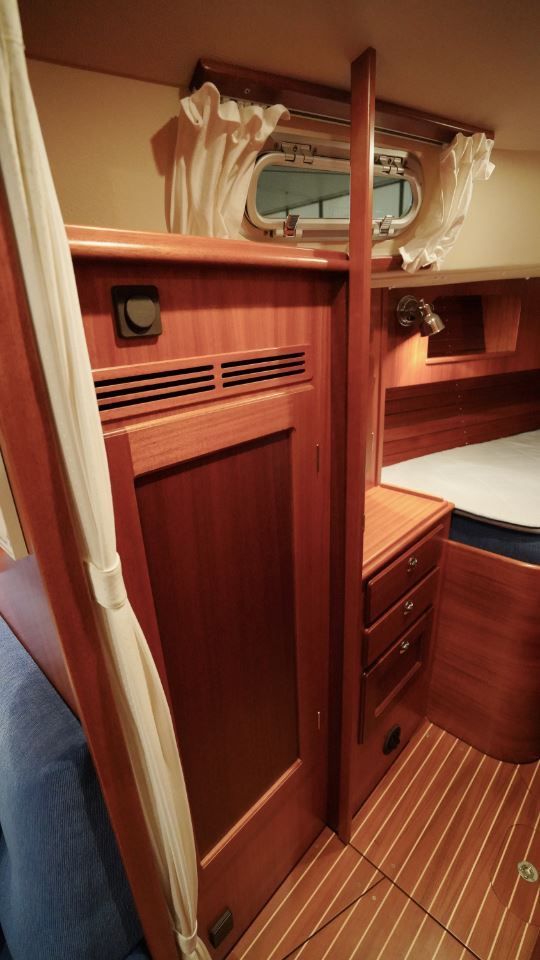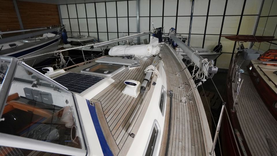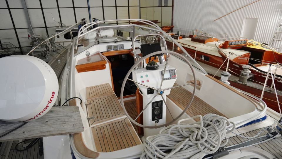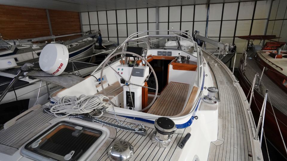 The Hallberg-Rassy 37 was produced in exactly 200 units between 2003 and 2012. Designed for extended cruising, she combines robust construction with a high level of onboard comfort. The well-protected centre cockpit, a hallmark of Hallberg-Rassy, features the brand’s distinctive windscreen, offering excellent shelter at sea.
