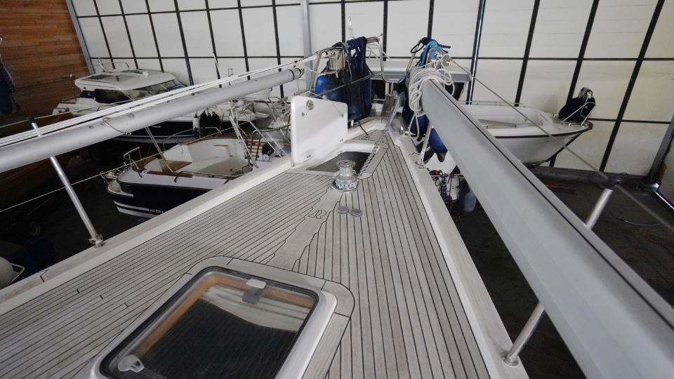 The slightly fractional rig is equipped with both forward and aft lower shrouds, achieving an ideal balance between strength and flexibility. The spreader configuration ensures that the mainsail remains undisturbed when sailing downwind on open-ocean passages. For added versatility, a masthead gennaker can be flown using an optional removable bow sprit.