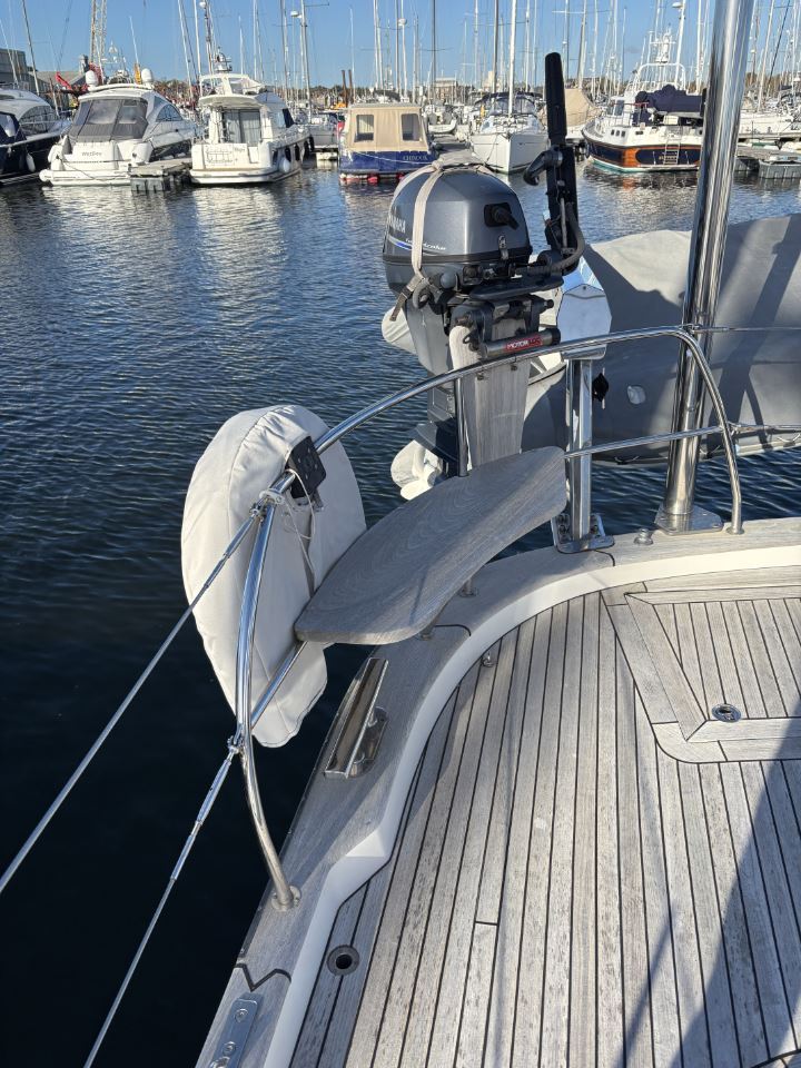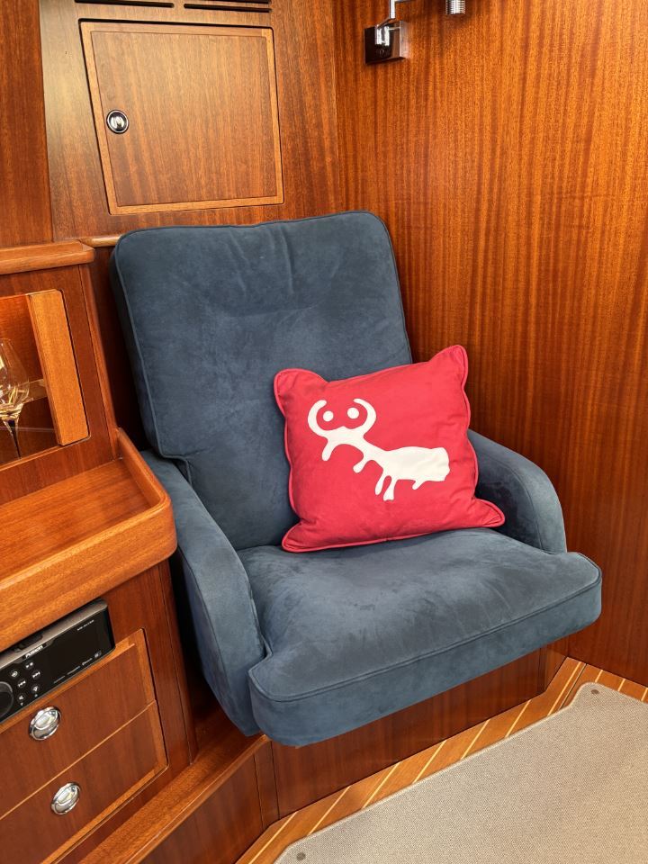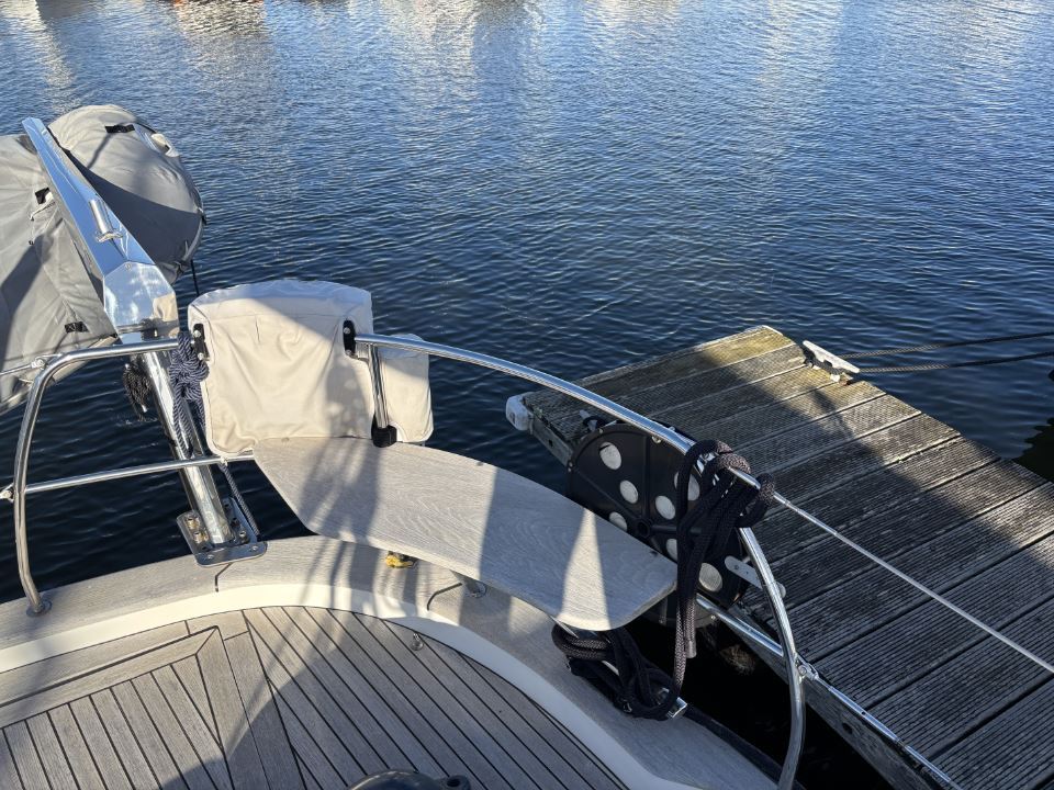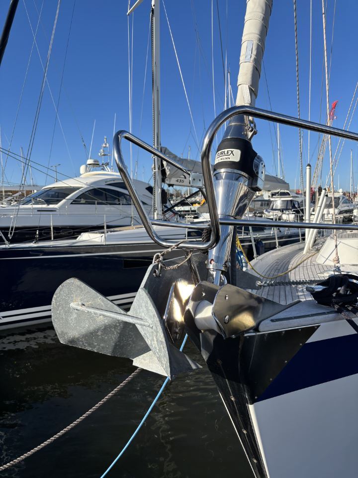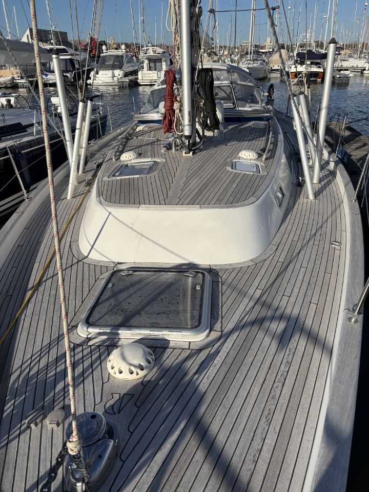 As previous owners of a Hallberg-Rassy 40, we were very much aware of the quality, great sea handling and company support of this marque. So, when we were considering a larger yacht, it wasn’t surprising that we chose another Hallberg-Rassy. We put much thought into the specification of the yacht, both for living comfort and bluewater sailing. We collected ELK from new in May 2016 and spent 3 months exploring the wonders of the west coast of Sweden and Norway, before crossing over to Inverness and through the Caledonian and Crinan canals to Largs. It was in Sweden that we visited the World Heritage Viking rock carving site in Tanum; the cushions in the saloon are made from material printed using photographs we took there. Since then, she has been kept in various UK marinas and also spent a year in North West Spain visiting several of the wonderful Rias. Unfortunately, our time in Spain was cut short by Covid, and we brought the yacht back to the UK. Since then, we have sailed on the South Coast of England, Channel Islands, Normandy and Brittany. ELK is a delight to sail and with ‘push button’ controls, my wife and I have found her very easy to handle with just the two of us, which has accounted for almost all of our sailing.