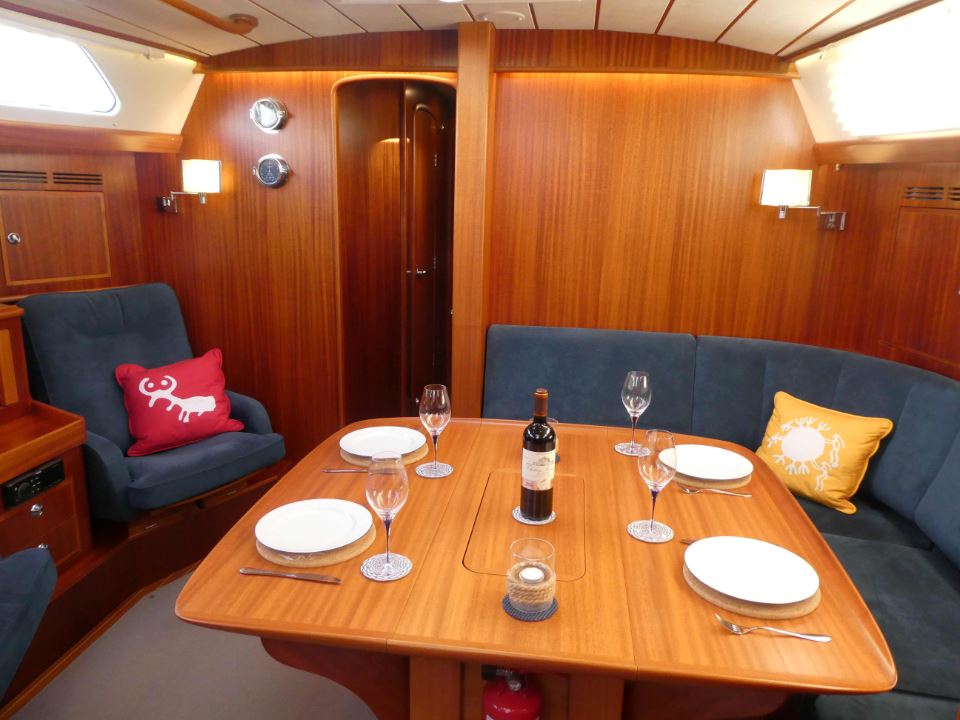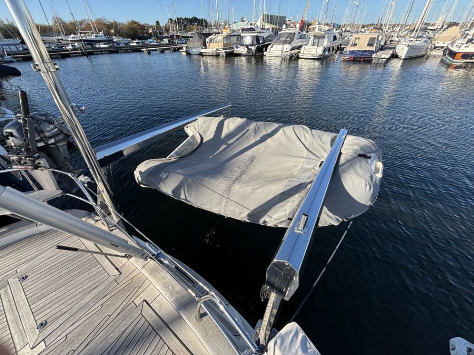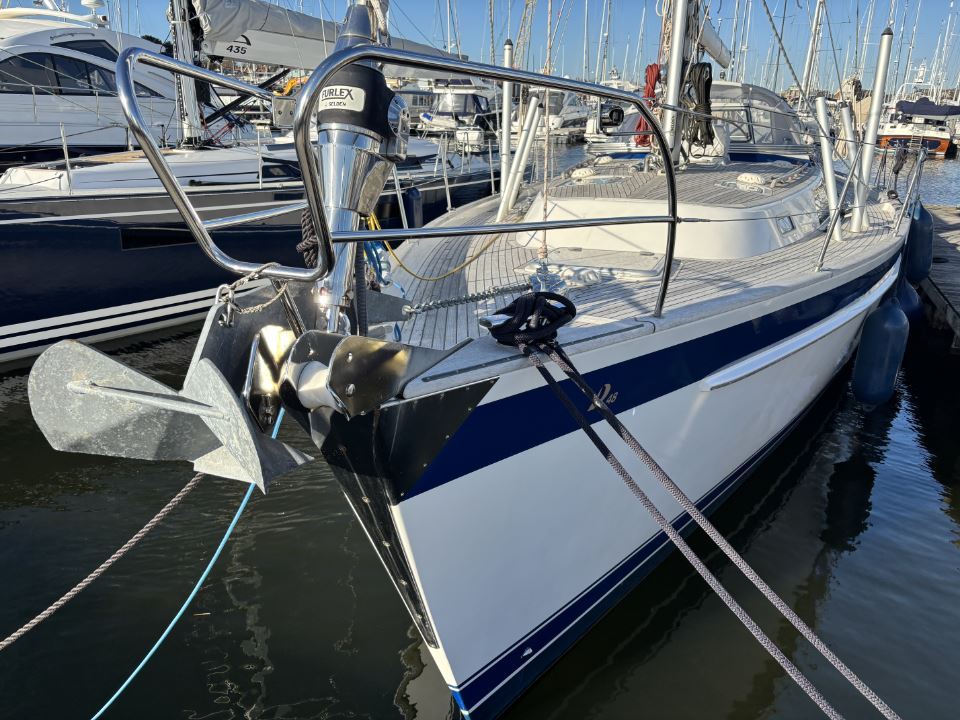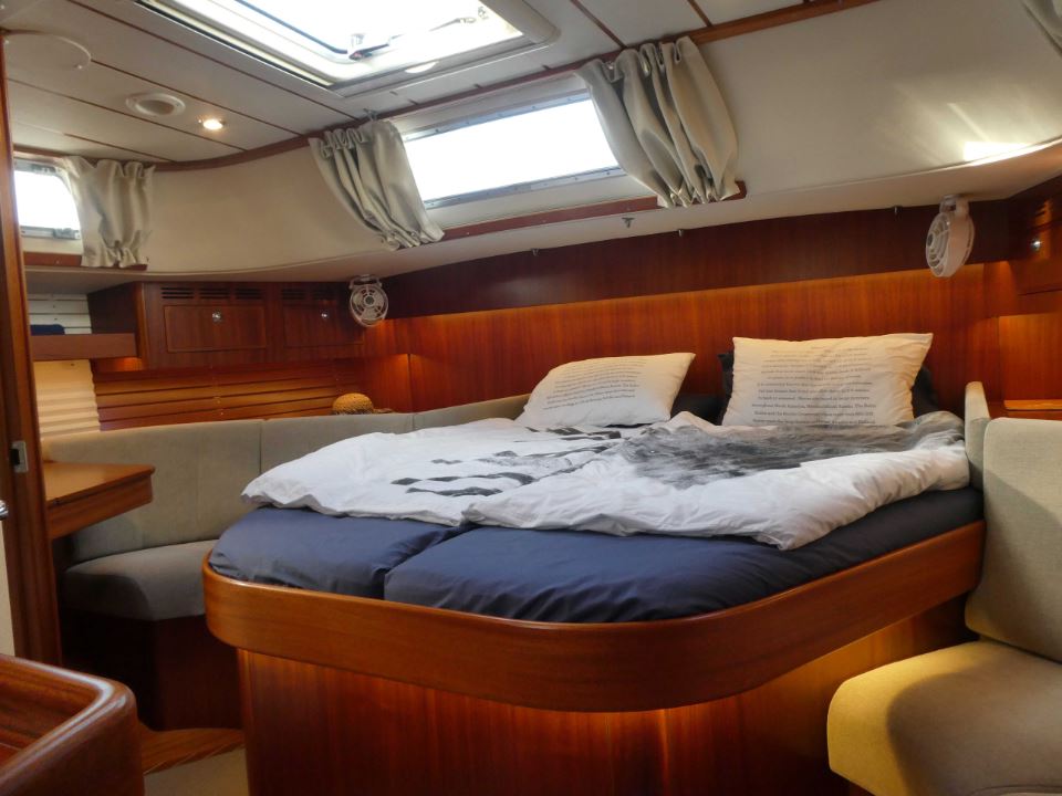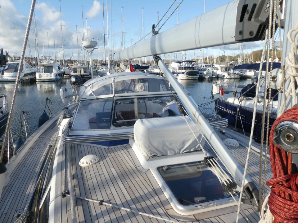 As previous owners of a Hallberg-Rassy 40, we were very much aware of the quality, great sea handling and company support of this marque. So, when we were considering a larger yacht, it wasn’t surprising that we chose another Hallberg-Rassy. We put much thought into the specification of the yacht, both for living comfort and bluewater sailing. We collected ELK from new in May 2016 and spent 3 months exploring the wonders of the west coast of Sweden and Norway, before crossing over to Inverness and through the Caledonian and Crinan canals to Largs. It was in Sweden that we visited the World Heritage Viking rock carving site in Tanum; the cushions in the saloon are made from material printed using photographs we took there. Since then, she has been kept in various UK marinas and also spent a year in North West Spain visiting several of the wonderful Rias. Unfortunately, our time in Spain was cut short by Covid, and we brought the yacht back to the UK. Since then, we have sailed on the South Coast of England, Channel Islands, Normandy and Brittany. ELK is a delight to sail and with ‘push button’ controls, my wife and I have found her very easy to handle with just the two of us, which has accounted for almost all of our sailing.