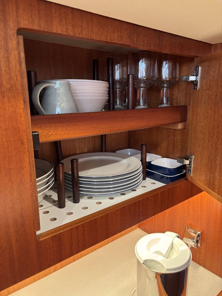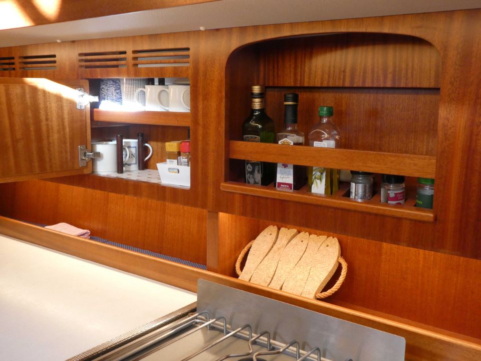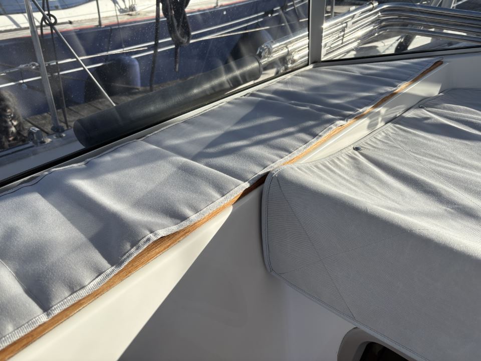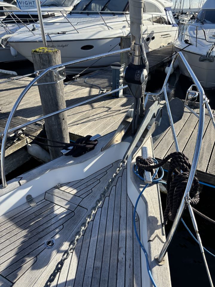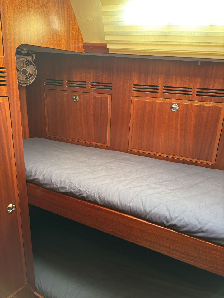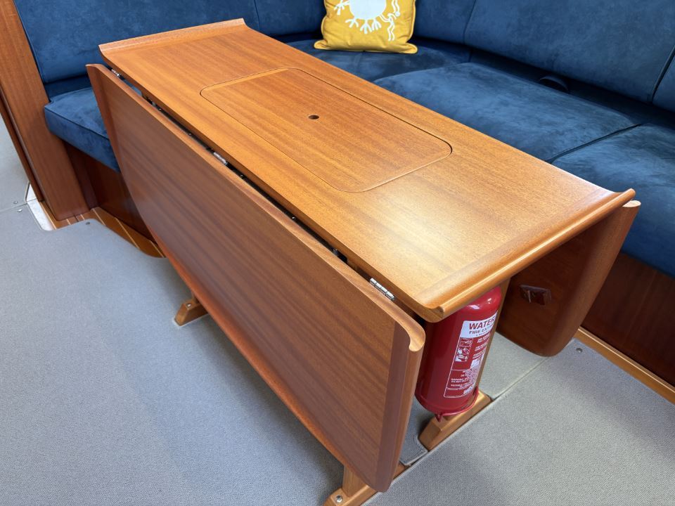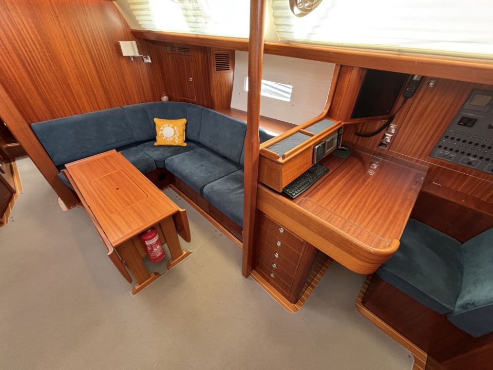 ELK has been extremely well looked after. The cockpit is covered with a sprayhood extension (when not onboard); varnished surfaces are covered with canvas to protect from sun and frost; chart tables are covered with non-slip pads when sailing. Internally, mahogany surfaces are protected by custom made PVC (nav station), canvas (table) and non-slip pads when sailing. She has been professionally maintained with annual services.