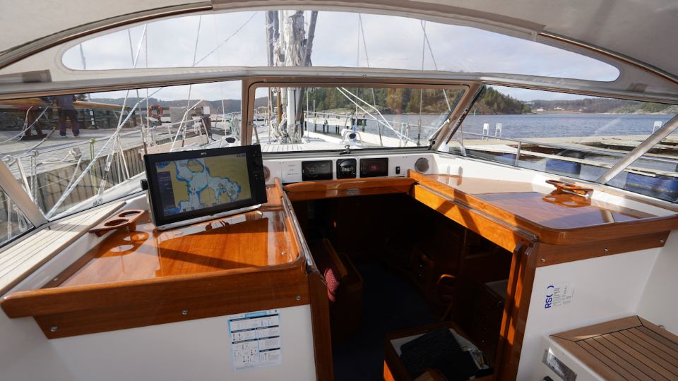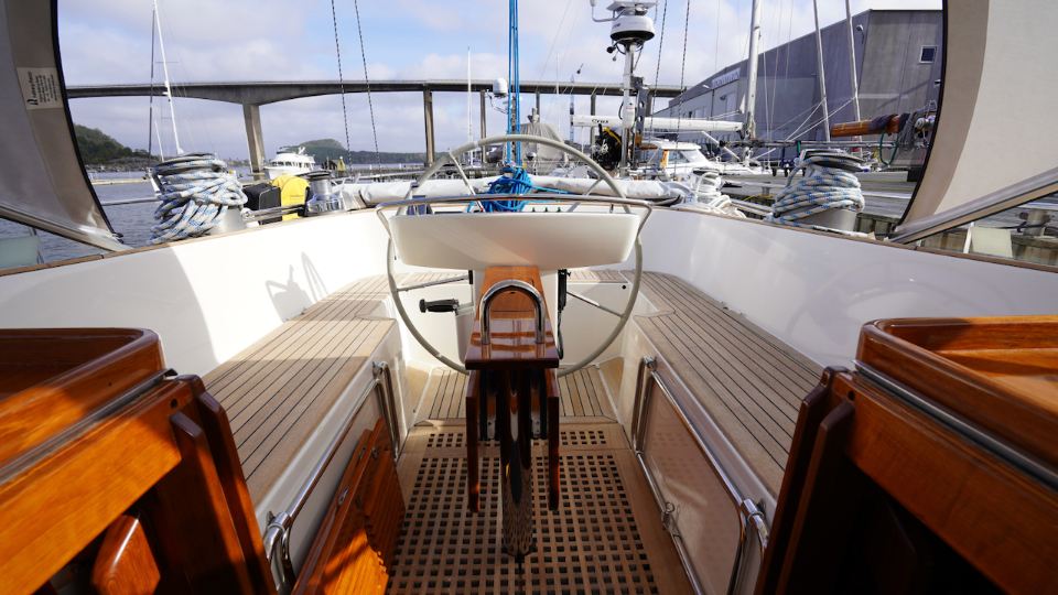 The protected centre cockpit offers a safe and comfortable steering position, well sheltered from the elements, making the yacht particularly suitable for long passages in varying conditions.
