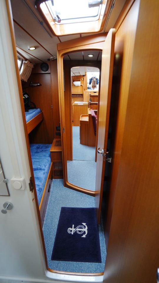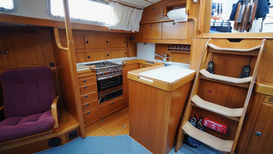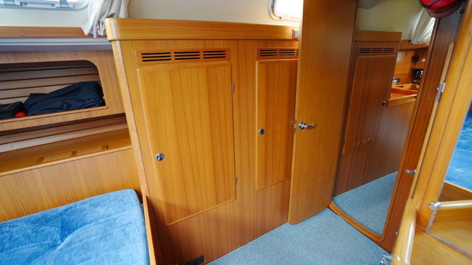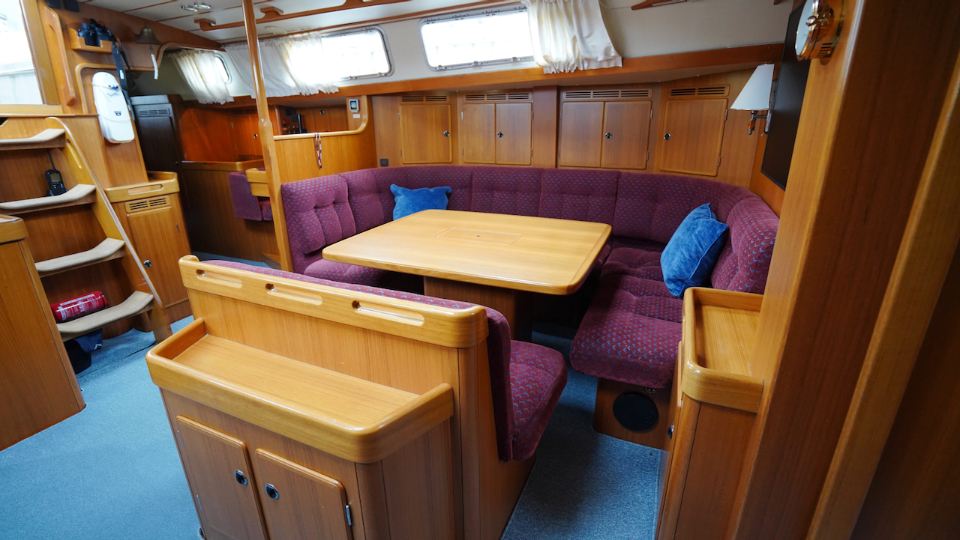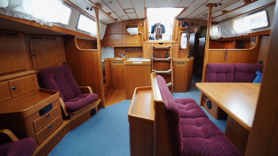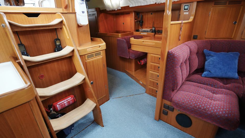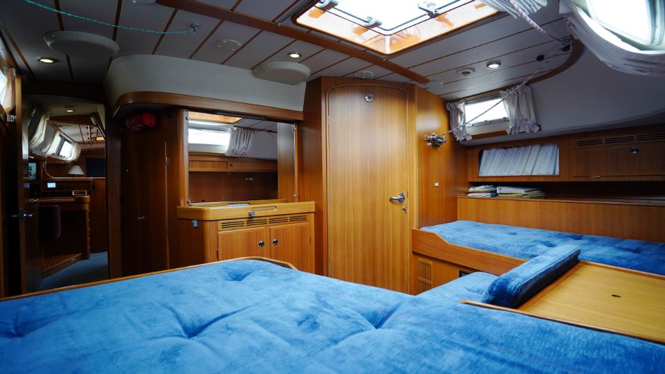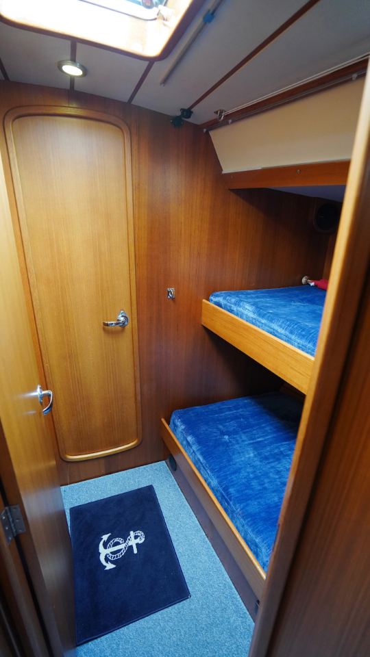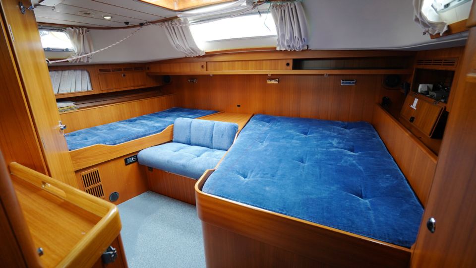 This particular example is equipped with an attractive layout featuring four cabins and a total of eight berths, making her ideal for both family sailing and extended cruising with guests on board.