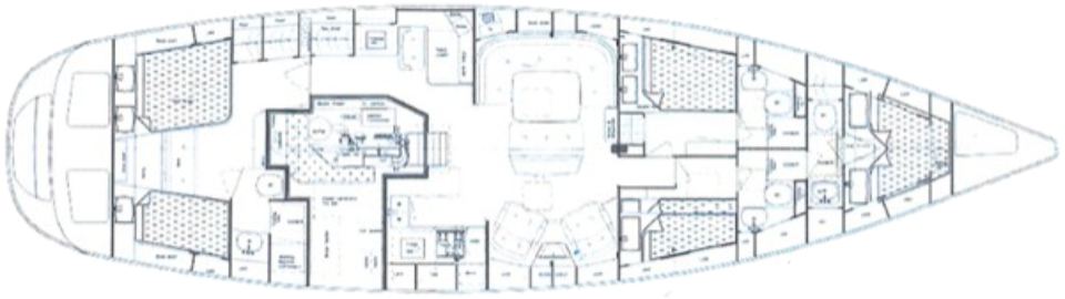11. Berths: 4 berths in 9 cabin(s) / 4 head/WC(s)