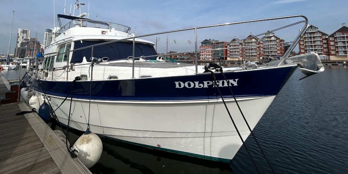 I have owned DOLPHIN for 10 years and cruised extensively along the UK East, South and West Coasts, the French Channel coast, and inland in the Netherlands and Belgium. Her seakeeping is excellent in all conditions – immensely strong throughout, with engines and systems to match; she has been a joy to spend time on.