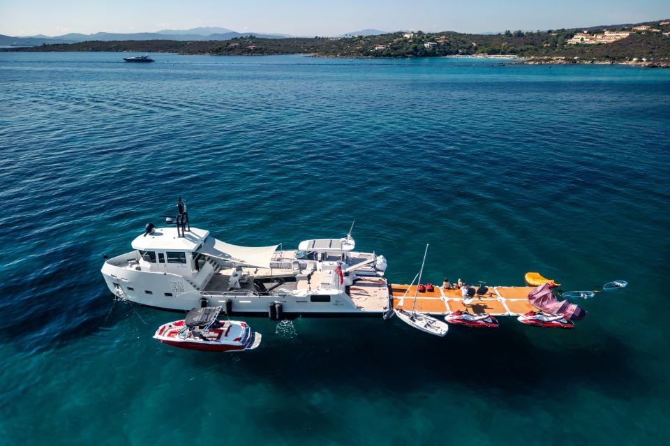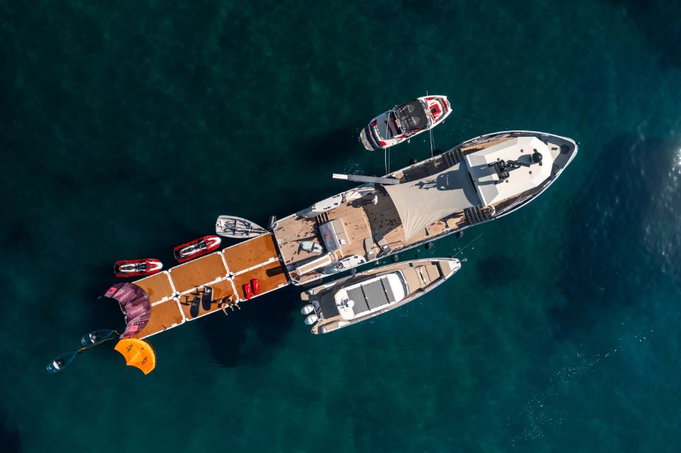 Conceived as a true multi-purpose platform, SHADOW offers exceptional flexibility across a range of high-value use cases. She can operate as an activity-focused dayboat accommodating up to 11 charter guests, a dedicated watersports support yacht, or an expedition and provisioning vessel for a larger mothership. Her expansive under-deck toy storage allows for the efficient carriage of a substantial equipment inventory, making her ideally suited to diving operations, adventure cruising, and extended yacht support programs.