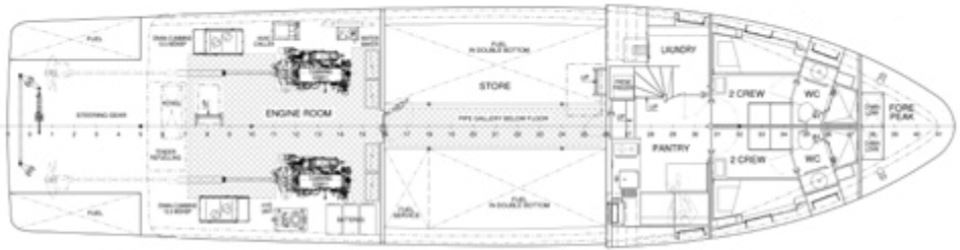 The vessel benefits from a highly practical and well-considered operational layout. Crew accommodation is located adjacent to the wheelhouse, supporting efficient communication and vessel management. Direct, well-arranged access to the engine room simplifies routine inspections and maintenance, while dedicated pantry and laundry facilities support extended periods onboard and commercial-grade operation. Maintained throughout to commercial standards, with all servicing and surveys up to date, SHADOW is turnkey and ready for immediate deployment.