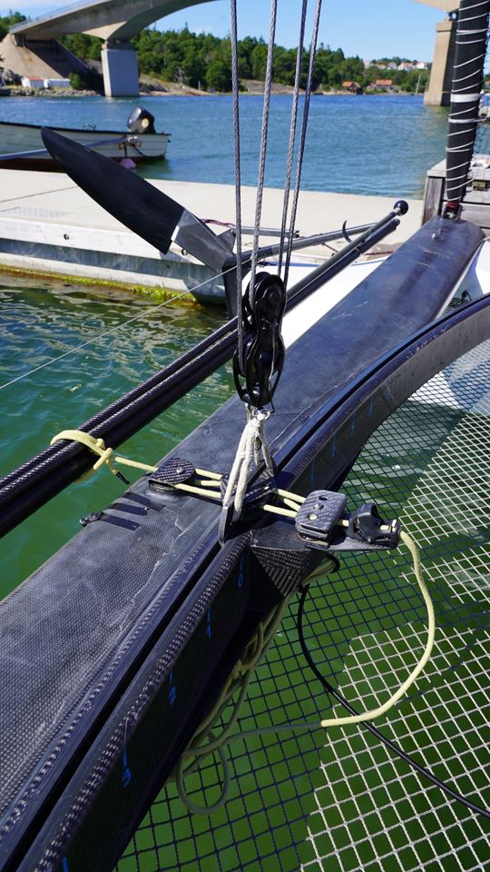 The hulls have been covered by 3M foil for protection and sponsorship between 2016 and 2019. Therefore, the finish of the (white) hulls is in very good condition. The boat can advantageously be foiled or painted as desired.