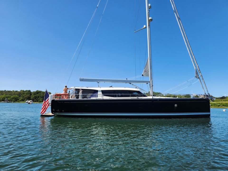 My wife and I fell in love with this Moody DS54 at the Newport show. We felt she was the Queen of the Show – so majestic. This Moody had room, light, quiet strength, and easy comfort. We have followed her since. When she came up for sale, we knew this was meant for us. We’ve sailed her with three other couples between New York City and Martha’s Vineyard. She is perfect for entertaining friends, sailing offshore, and fishing off the stern. We loved her so much, we continued to keep her in pristine condition and added remote monitoring with highspeed internet so we could constantly be in touch.