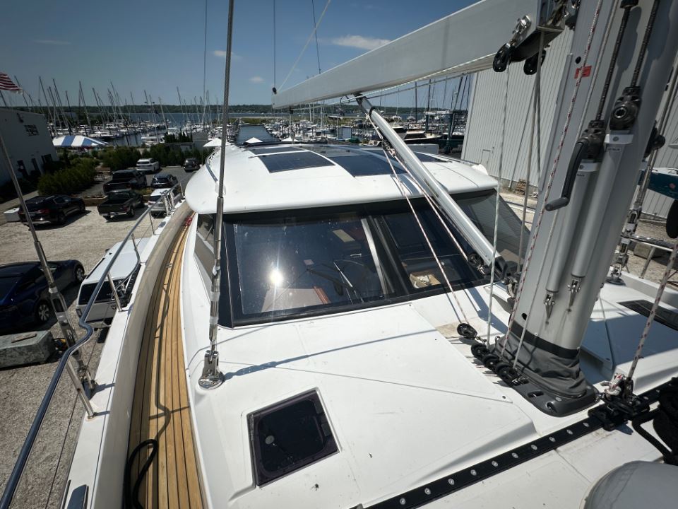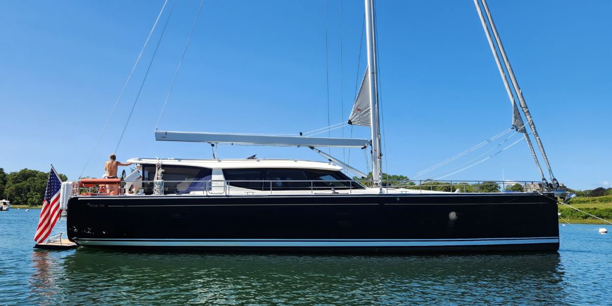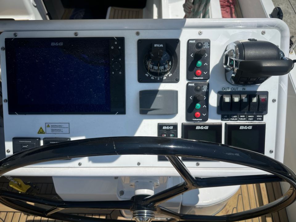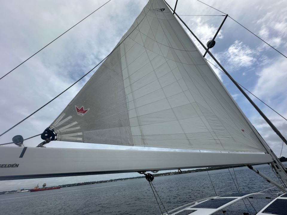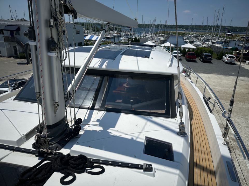 Extremely easy to sail yet very fast, the boat is equipped with twin electric furlers, a self-tacking jib, and electric in-mast furling.