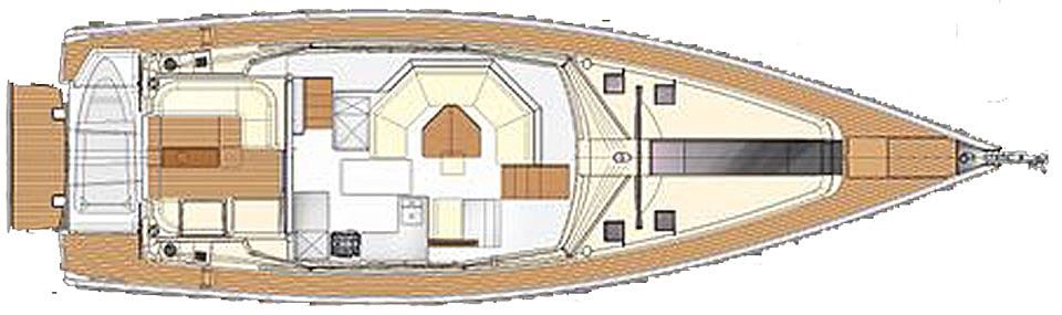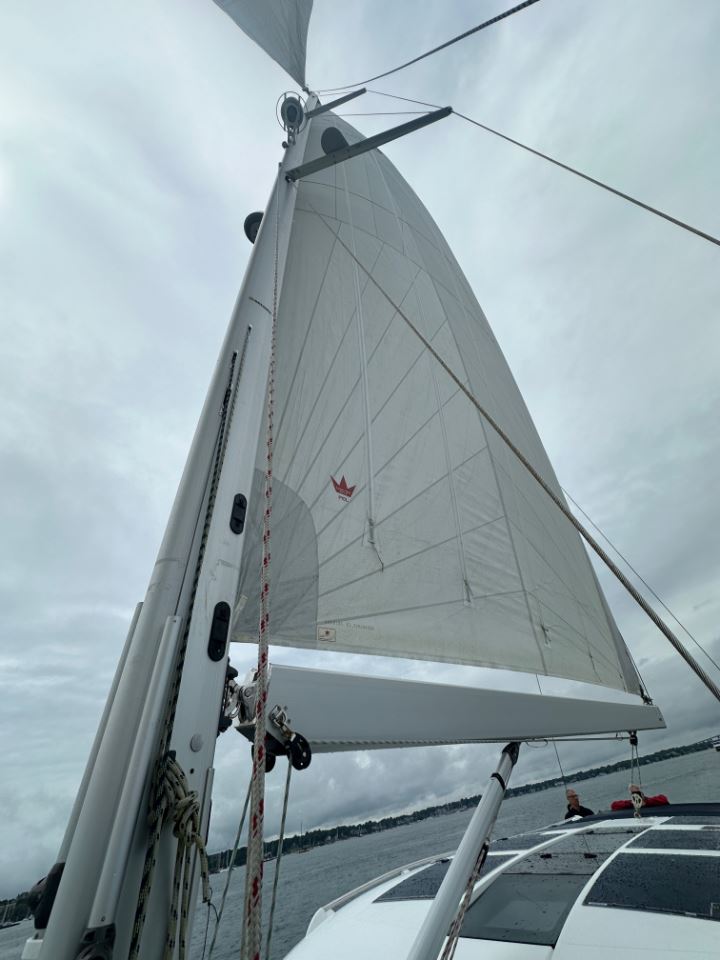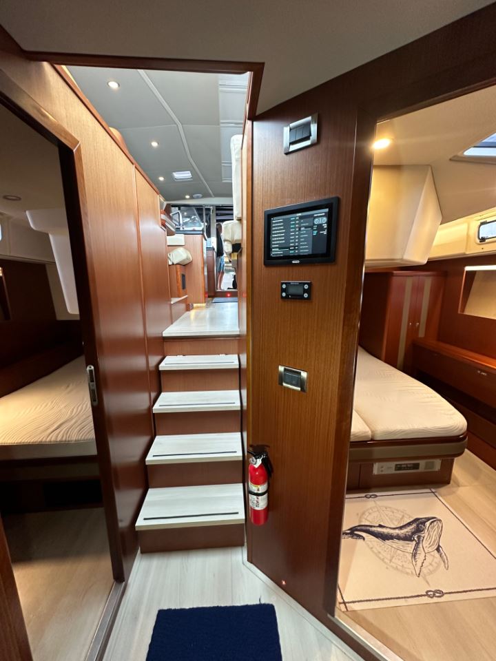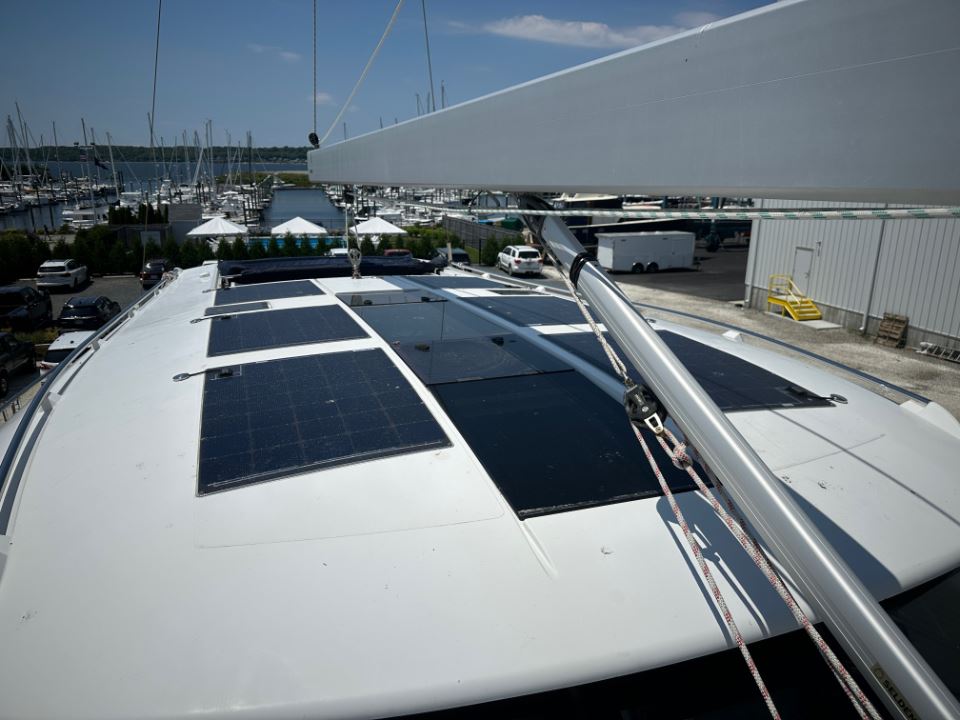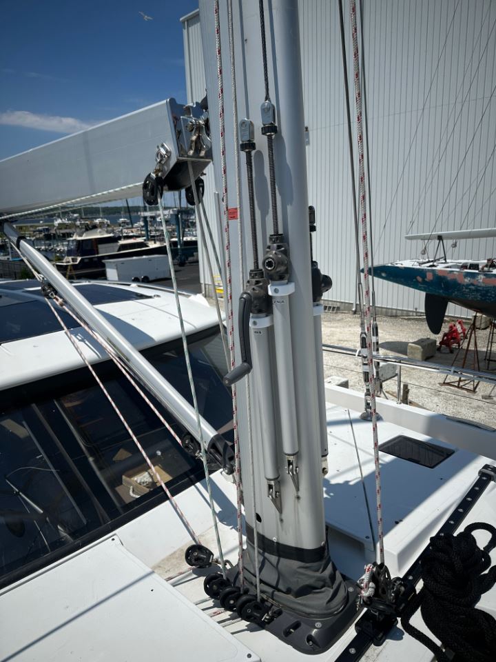 Extremely easy to sail yet very fast, the boat is equipped with twin electric furlers, a self-tacking jib, and electric in-mast furling.