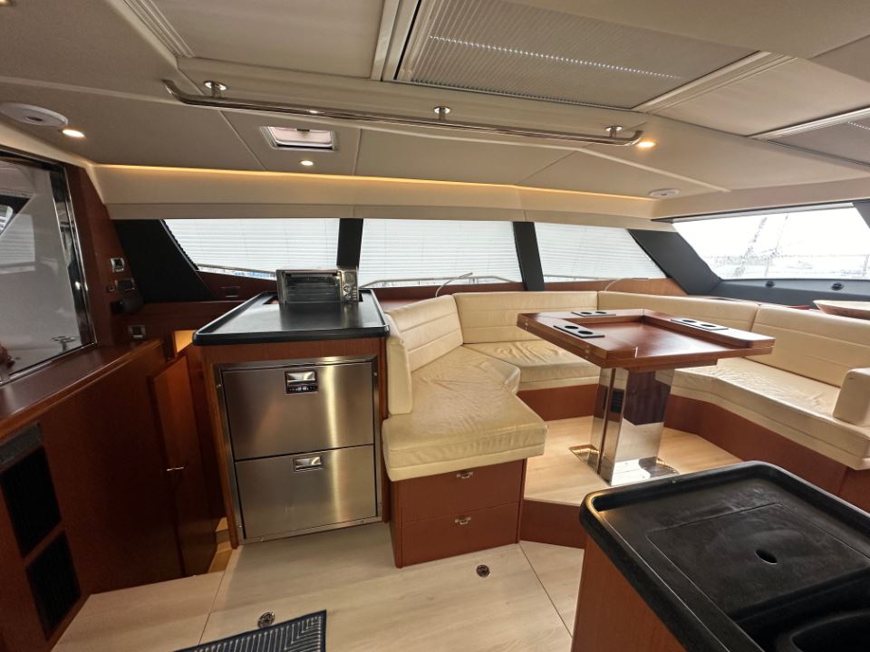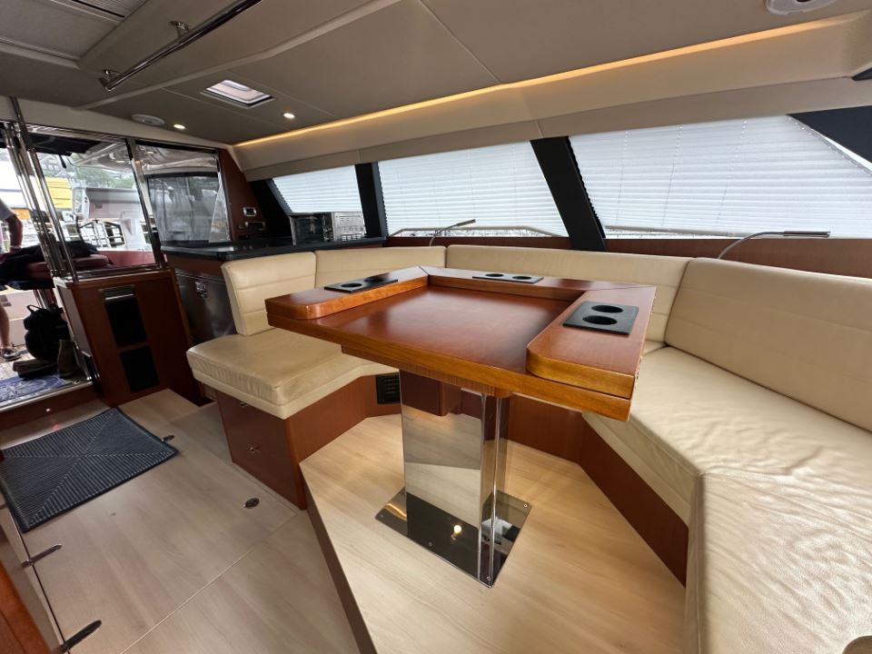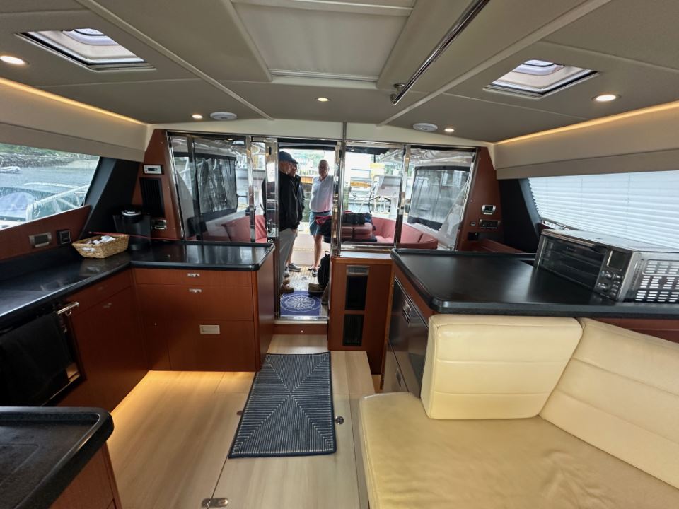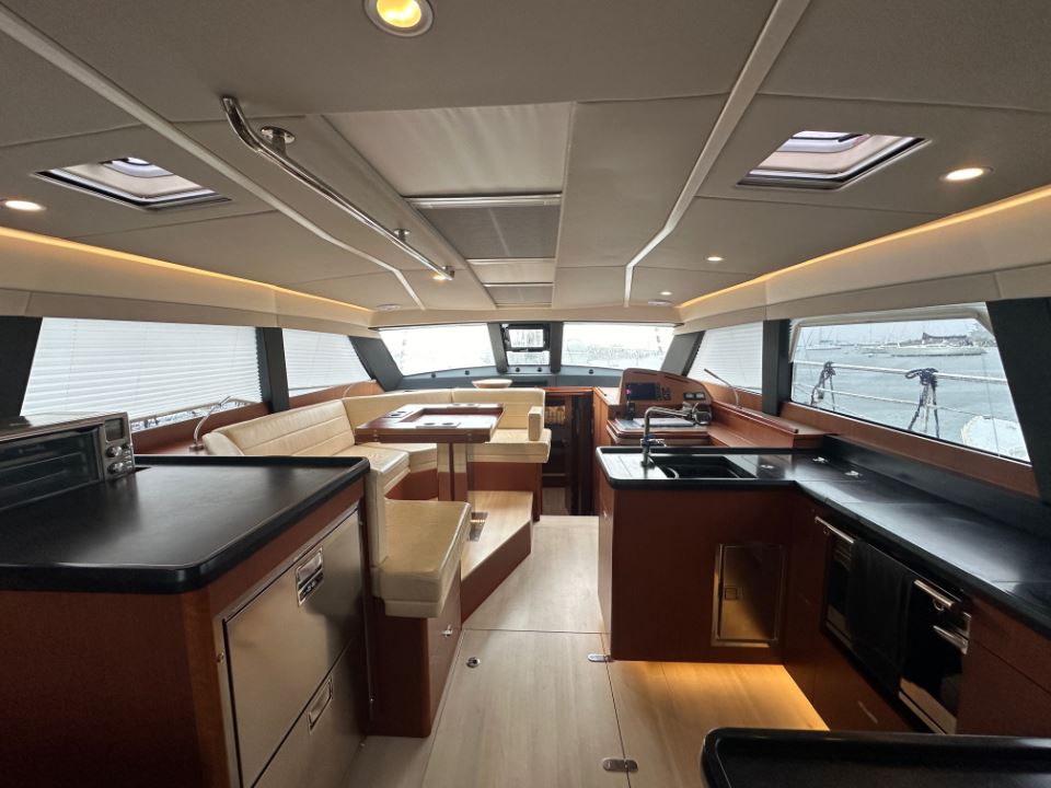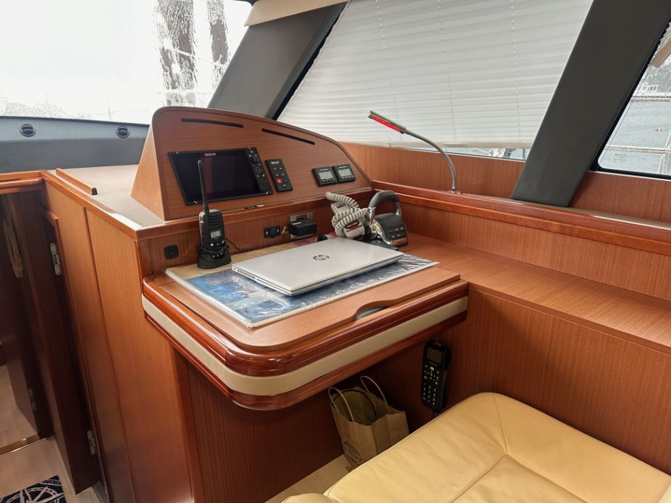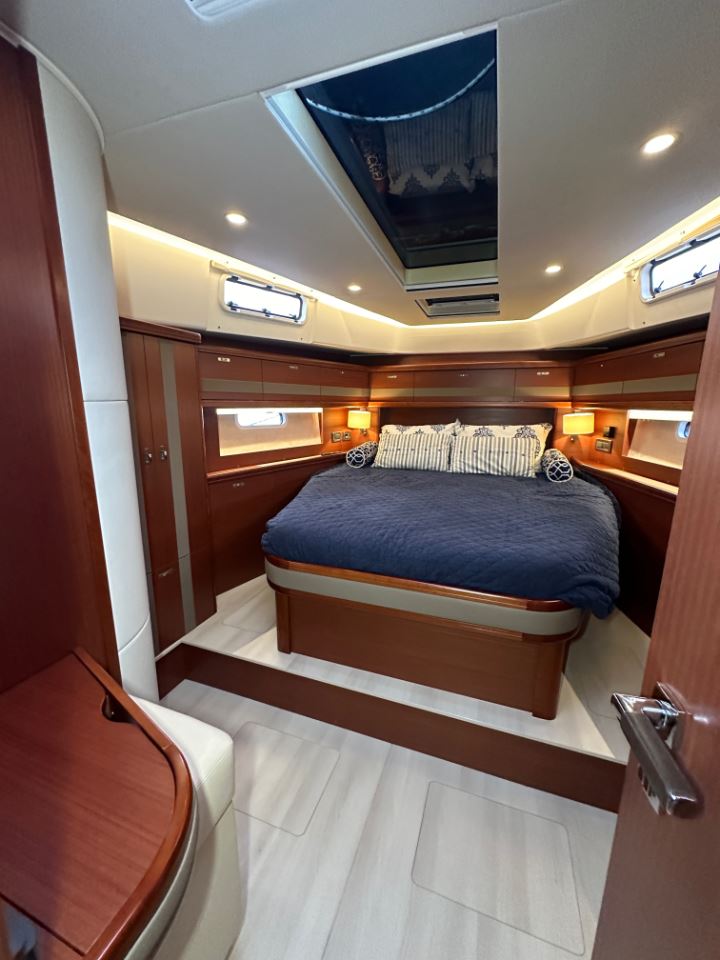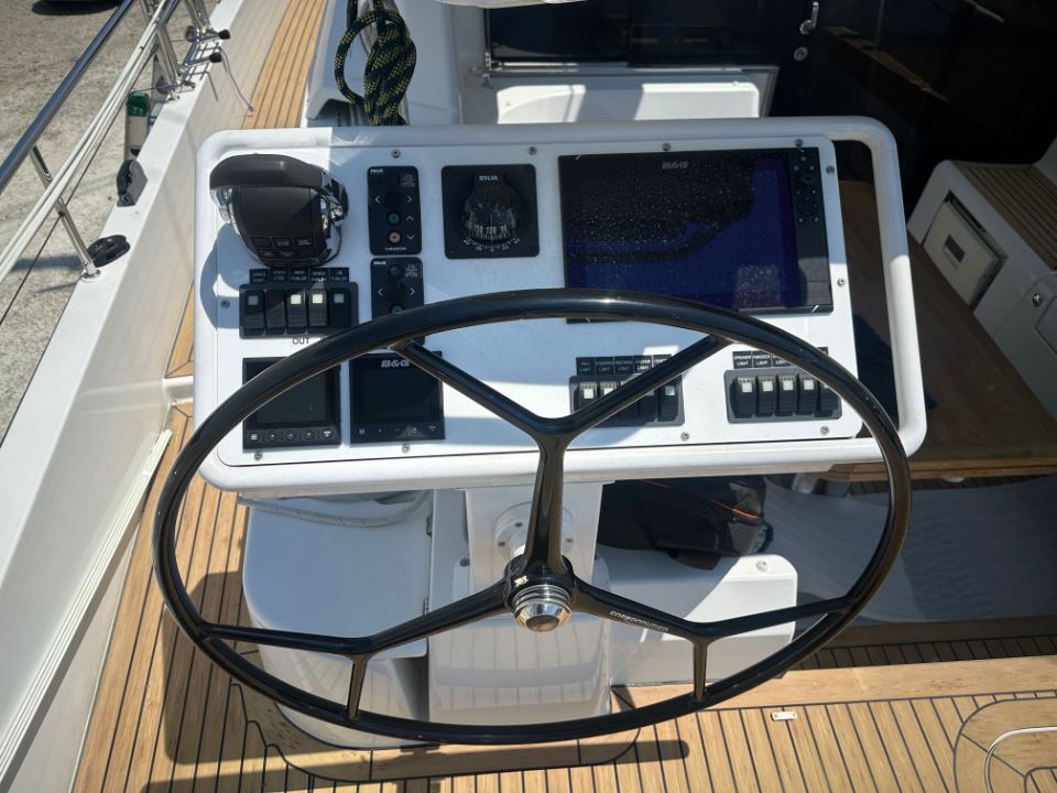 Moody DS54 #057, HARMONY, was ordered by her first owners at the Newport Boat Show and delivered in the summer of 2019. She exemplifies the popular and cleverly designed Moody DS54, featuring a stunning dark blue hull and low-maintenance Flexiteek decking. The interior includes a raised floor and seating in the saloon table area, a change implemented from hull #55 onwards, providing much more headroom over the port guest cabin berth. Finished in Mahogany, with beige leather upholstery and black-flecked Corian countertops, she is the galley-up version, equipped with extra twin-drawer fridge-freezers, a washing machine, diesel heater, 60Kbtu air conditioning, generator, watermaker, and much more.