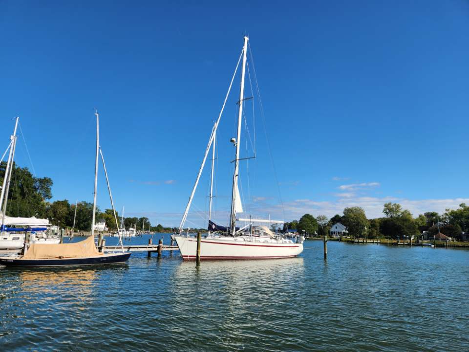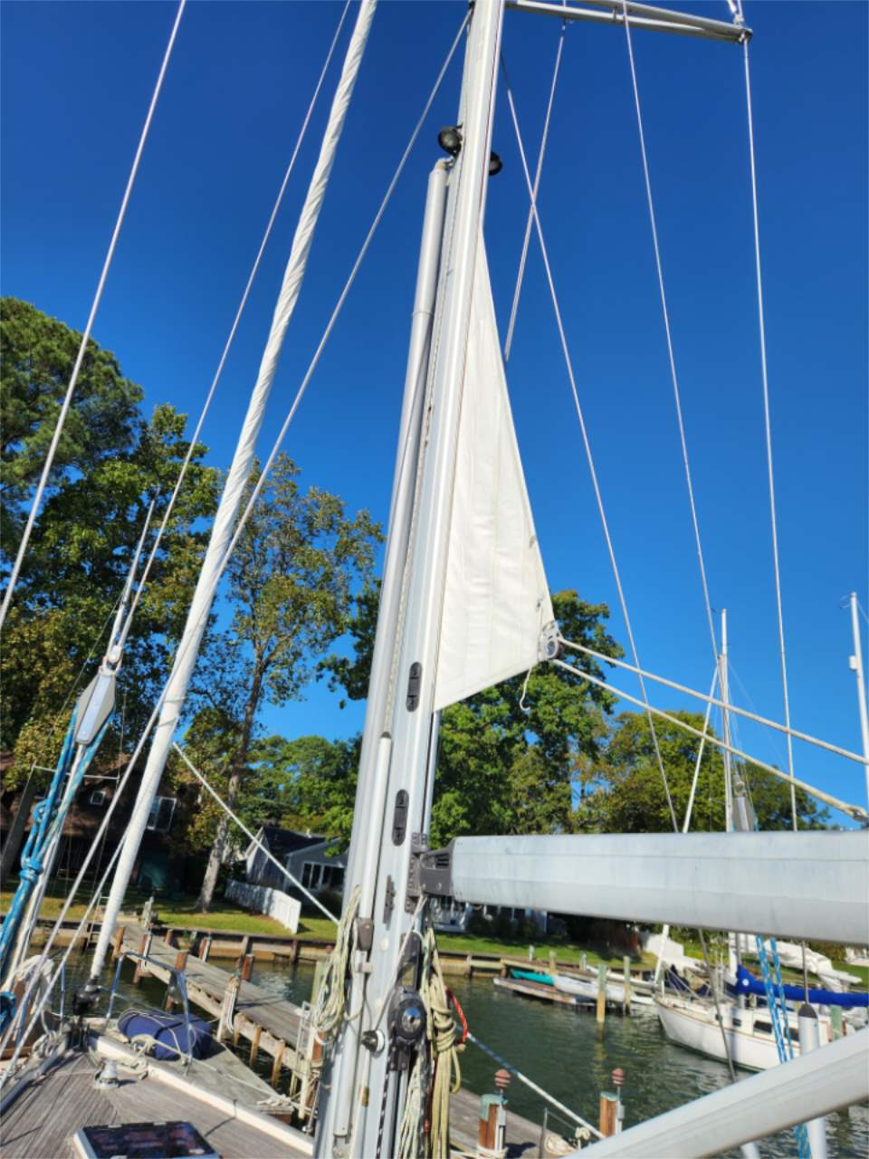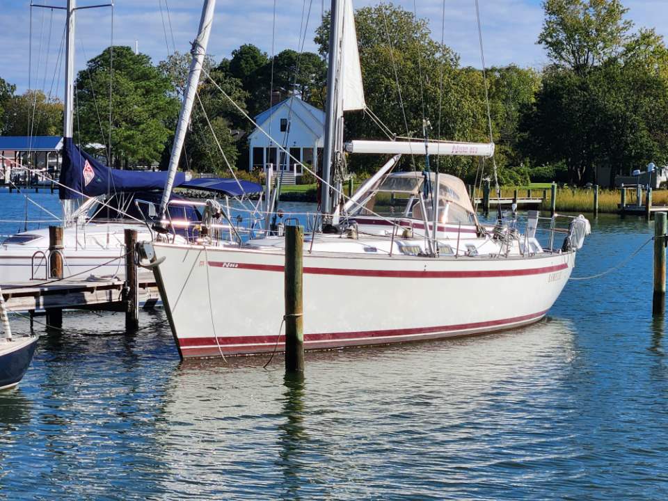 She has been based in Oxford, MD, and has cruised mostly in the Chesapeake, with a couple of trips to New England. Every winter, she has been stored ashore under a fitted canvas cover.