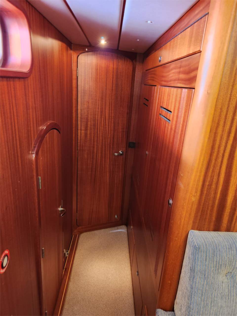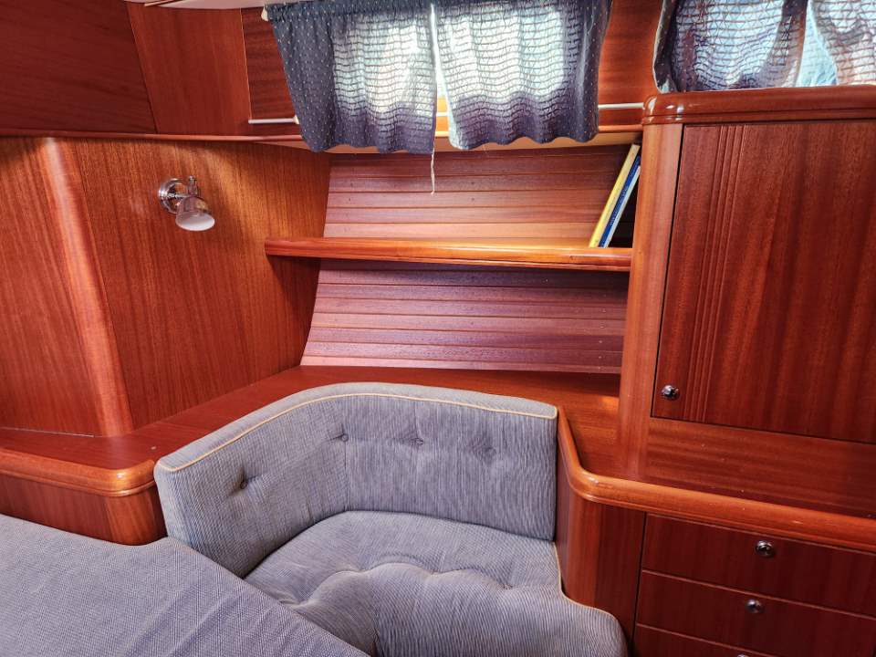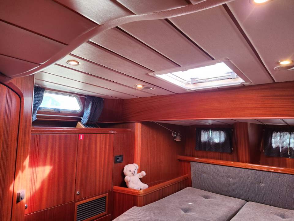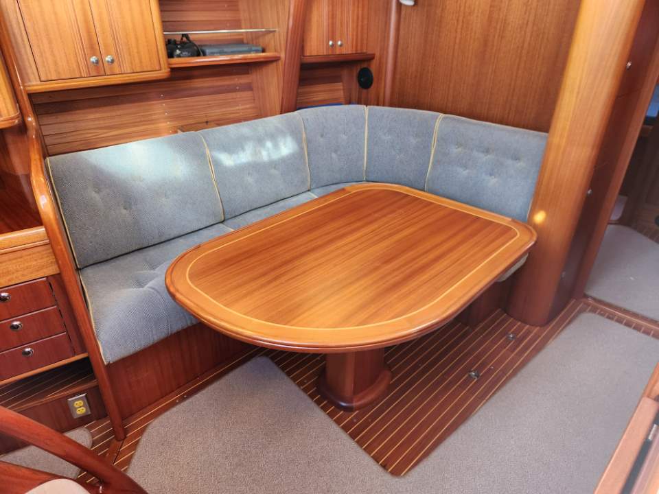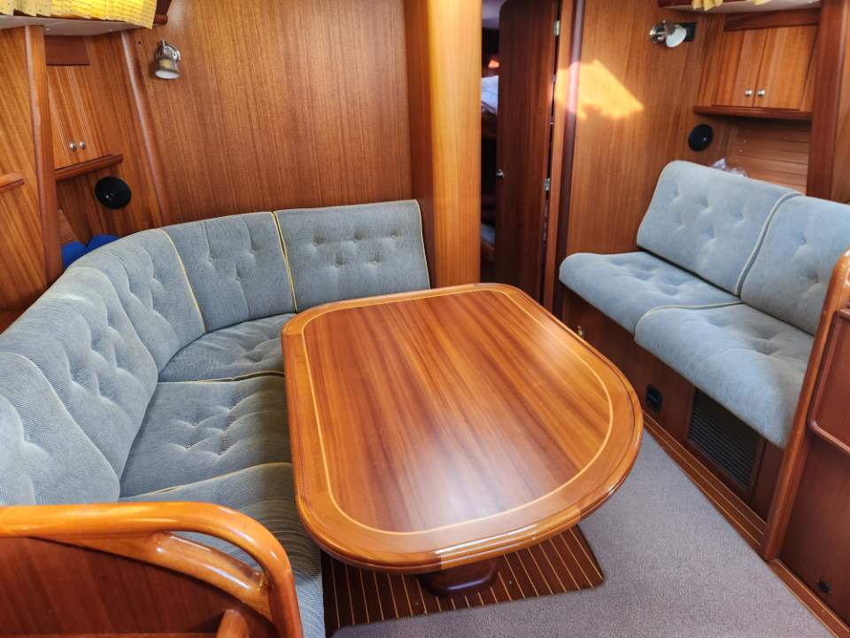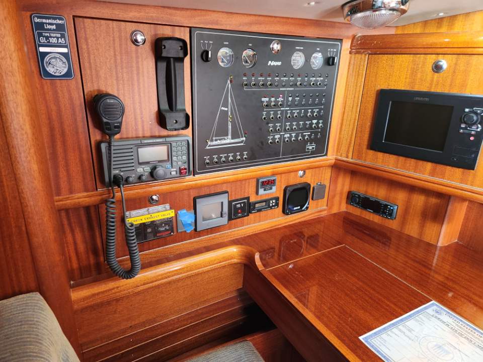 The Najad 460 is a beautifully crafted yacht, built by the renowned Najad yard in Sweden and designed by Judel/Vrolijk & Co. This exclusive and solid vessel is perfect for ocean sailing, yet easy to handle for coastal cruising as well. The center cockpit is equipped with a sturdy fixed windscreen and a sprayhood, providing excellent protection from cold, windy, and rainy weather. All sail handling can be done from this central location. The wide side decks and numerous solid grab rails ensure that the crew can move around the deck with ease and confidence. The teak deck not only adds to the yacht’s aesthetic appeal but also provides excellent non-slip functionality and additional insulation.