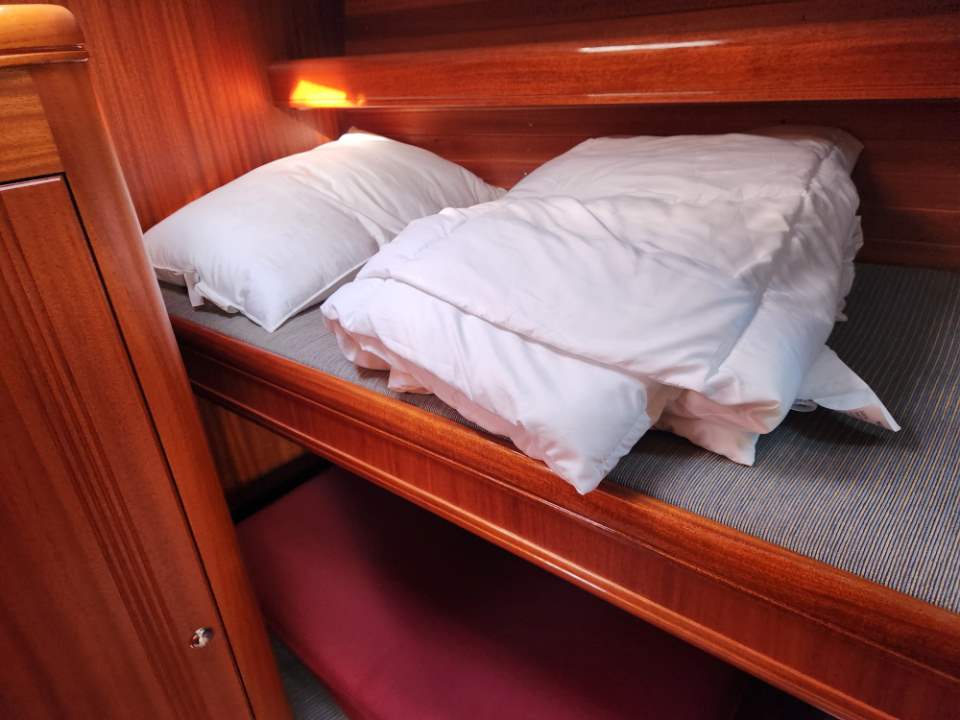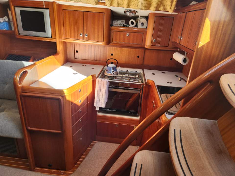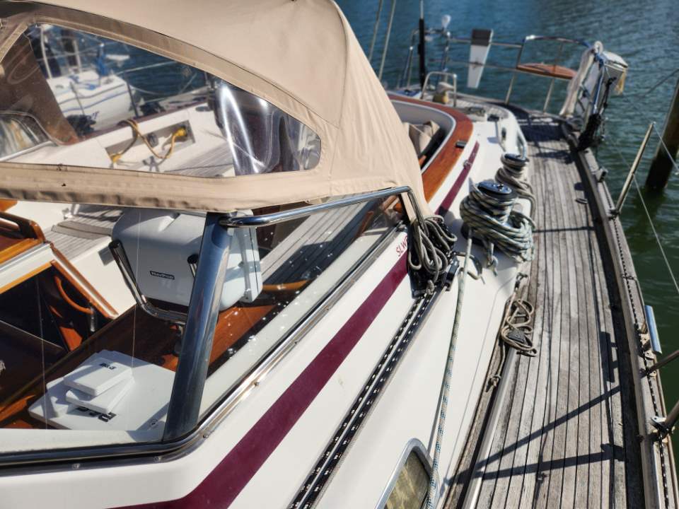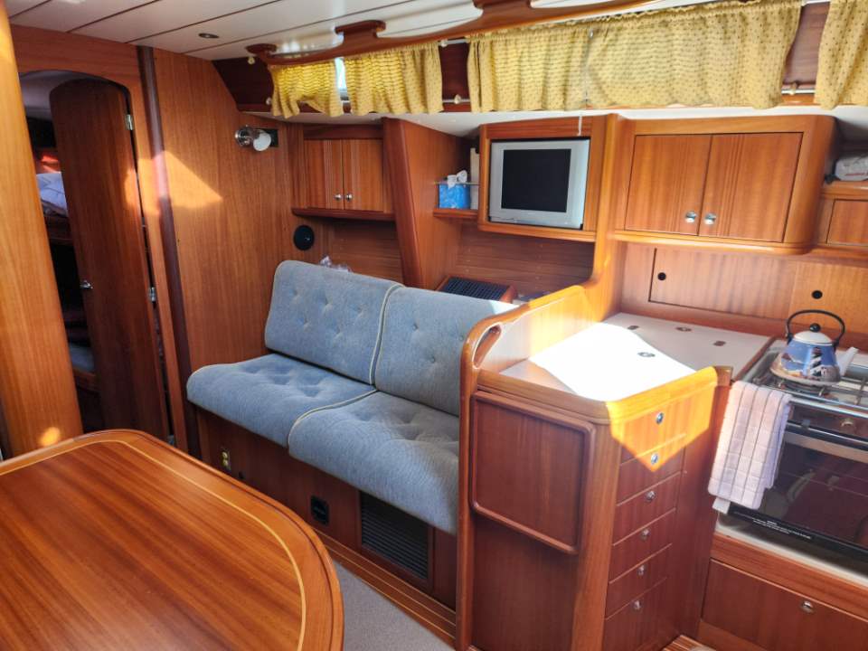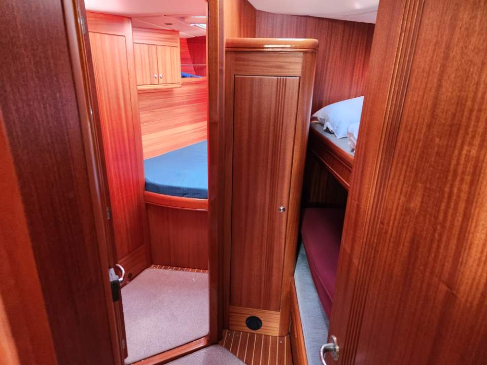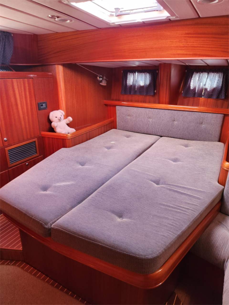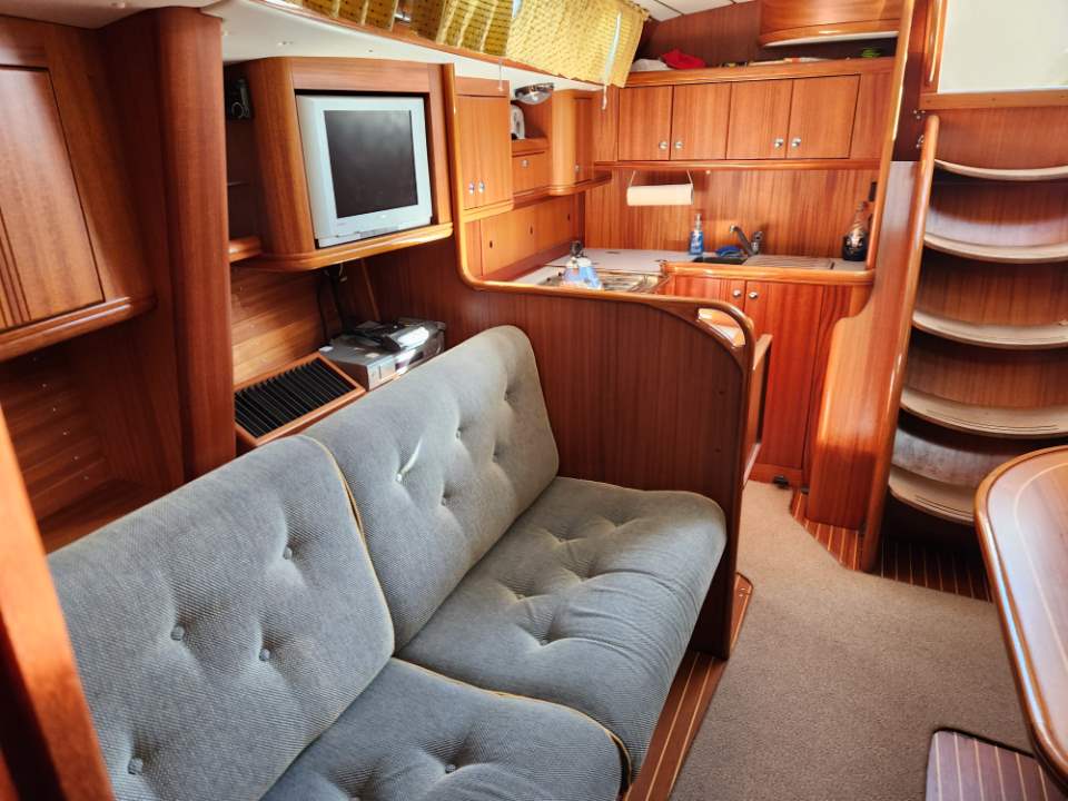 The Najad 460 is a beautifully crafted yacht, built by the renowned Najad yard in Sweden and designed by Judel/Vrolijk & Co. This exclusive and solid vessel is perfect for ocean sailing, yet easy to handle for coastal cruising as well. The center cockpit is equipped with a sturdy fixed windscreen and a sprayhood, providing excellent protection from cold, windy, and rainy weather. All sail handling can be done from this central location. The wide side decks and numerous solid grab rails ensure that the crew can move around the deck with ease and confidence. The teak deck not only adds to the yacht’s aesthetic appeal but also provides excellent non-slip functionality and additional insulation.