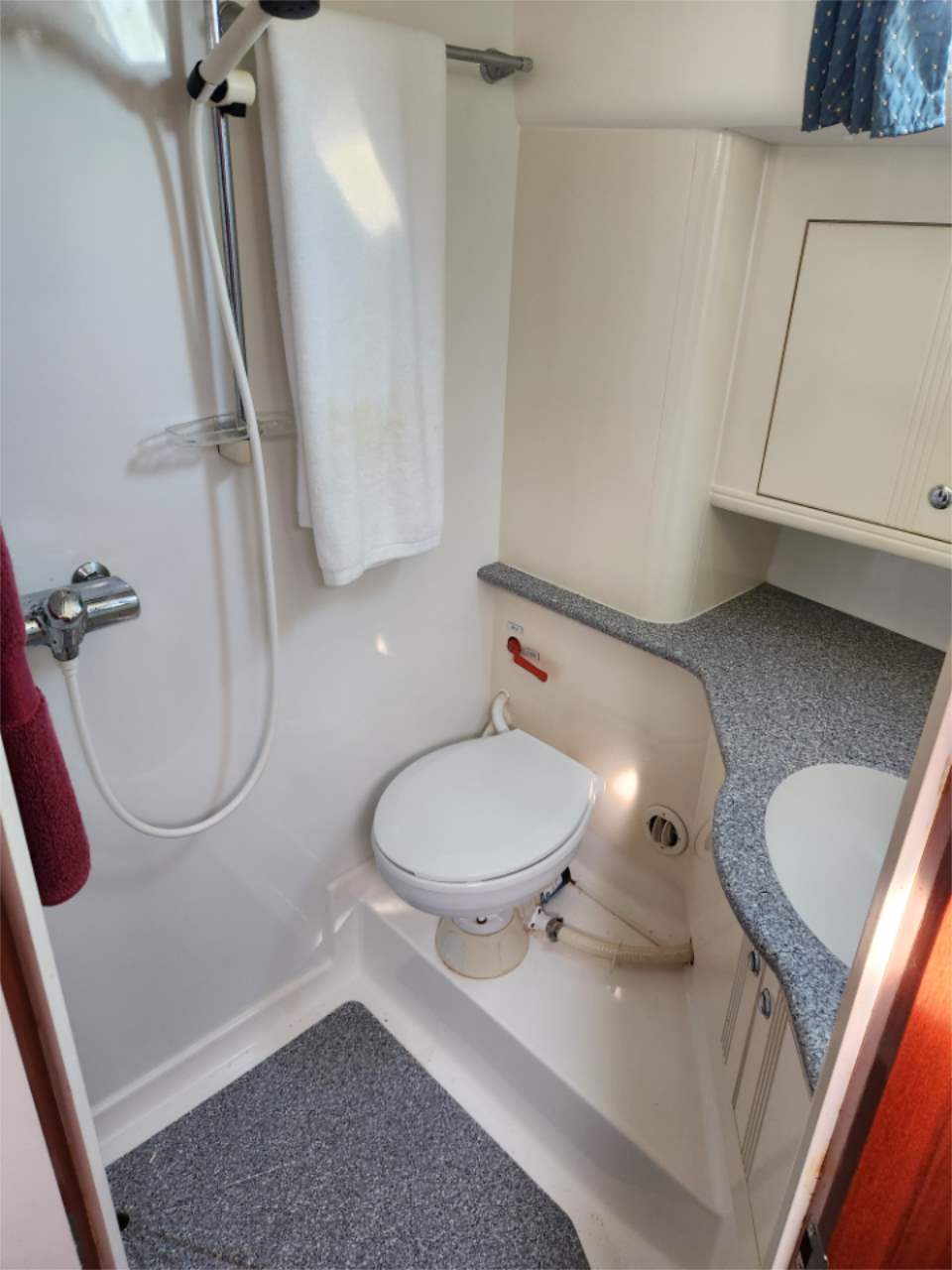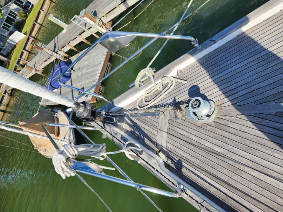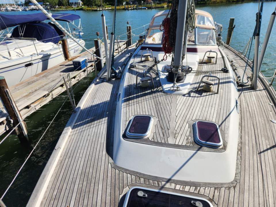 She is very nicely equipped and updated, with a brand-new Northern Lights generator, a new 12mm glued-down teak deck (installed in 2011), new electronics, and an engine with only 469 hours!