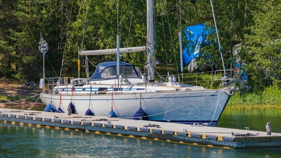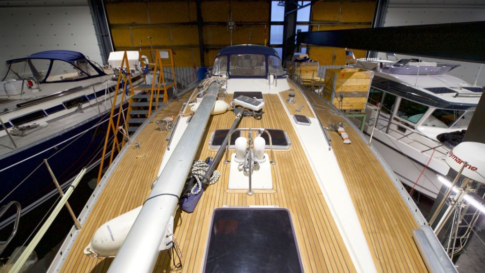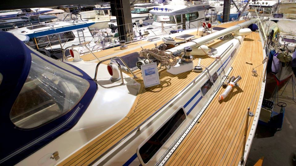 Between 2023 and 2024, LADY CHRISTINA underwent an extensive professional refit in Finland, totalling approximately 1,660 working hours. The work included complete underwater hull restoration to bare laminate with controlled drying, moisture measurements, epoxy treatment, and new antifouling. The rudder was fully opened, renovated, and reassembled with new bearings installed. The mast base was completely renovated and repainted as part of the refit. Additional works included installation of a bow thruster, replacement of freshwater tanks and sanitation systems, servicing of all seacocks, winches and steering systems, inspection of electrical installations, and extensive interior refurbishment including soleboards and varnished surfaces. The teak deck, originally replaced in 2010, was sanded and refreshed as part of this programme.