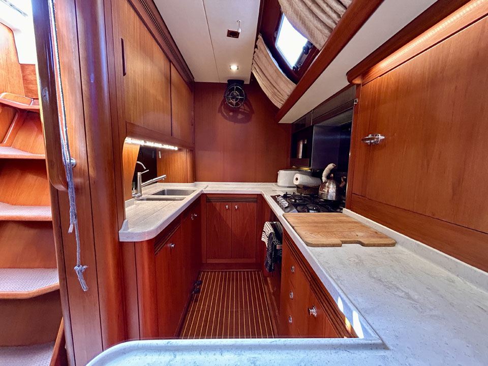 Throughout her life the yacht always had good care and a captain. She had major upgrades including a changed mast, boom furling mainsail, “magic trim” for main, simplified deck plan for easier sailing, a replaced generator, replaced teak deck, and more.