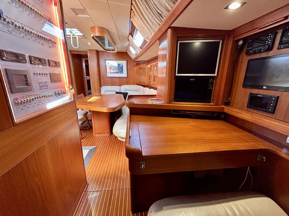Designed internally to unique exceptional owner’s specification and design, there is no other Swan that has this specific spectacular interior. The deck layout is designed for short-handed family crewing and can be sailed with just two people, unique to this size of yacht.