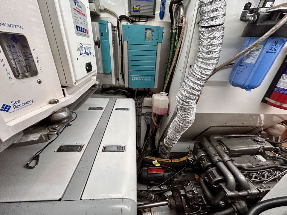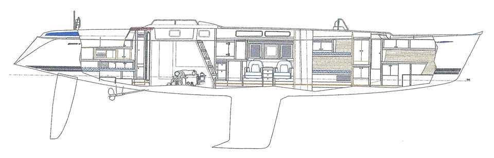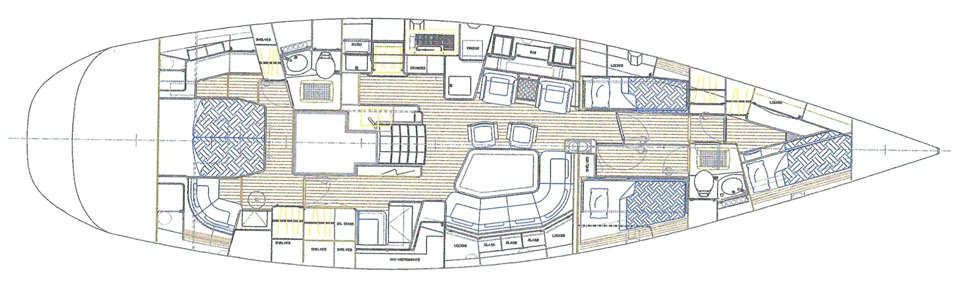 Conceived for sailing in US waters, the Caribbean and Europe she had a high specification from the outset with Marine Air heating / airconditioning, extra refrigeration, powered winches, etc.