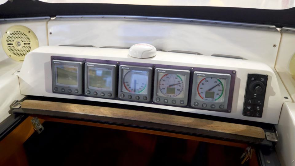 • Raymarine navigation instruments with plotters radar and autopilot.