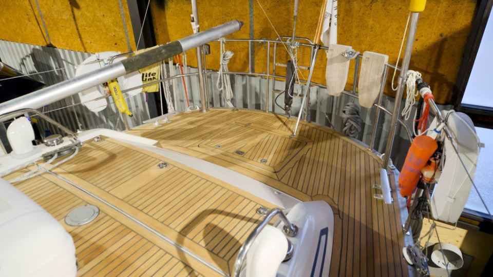 • Sanded teak deck in 2024.
