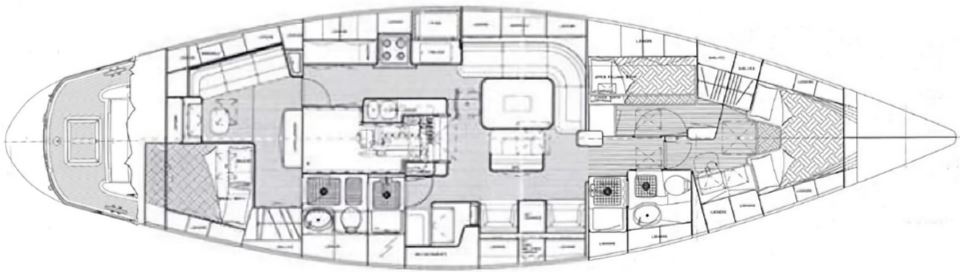 • Three cabin, 2-heads ‘Family Cruiser’ layout with master cabin aft.
