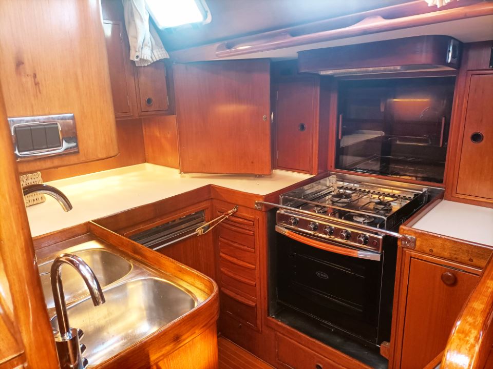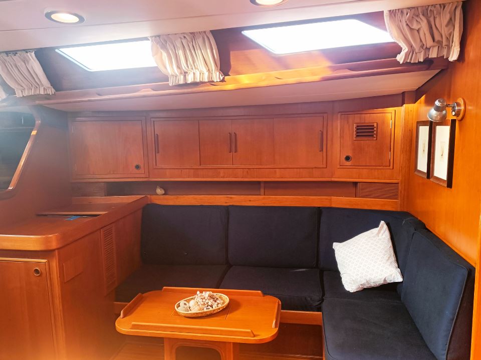 She is very safe and comfortable – the cockpit particularly, most important when the children were younger. The sun deck aft was also often appreciated and also without danger.