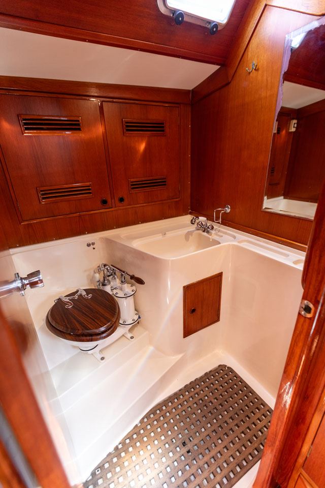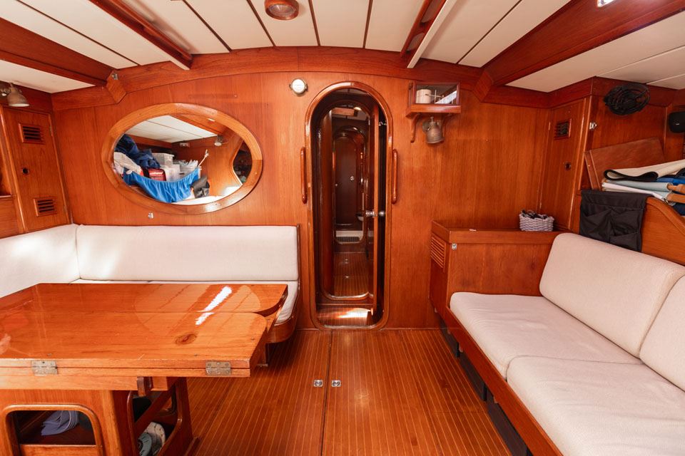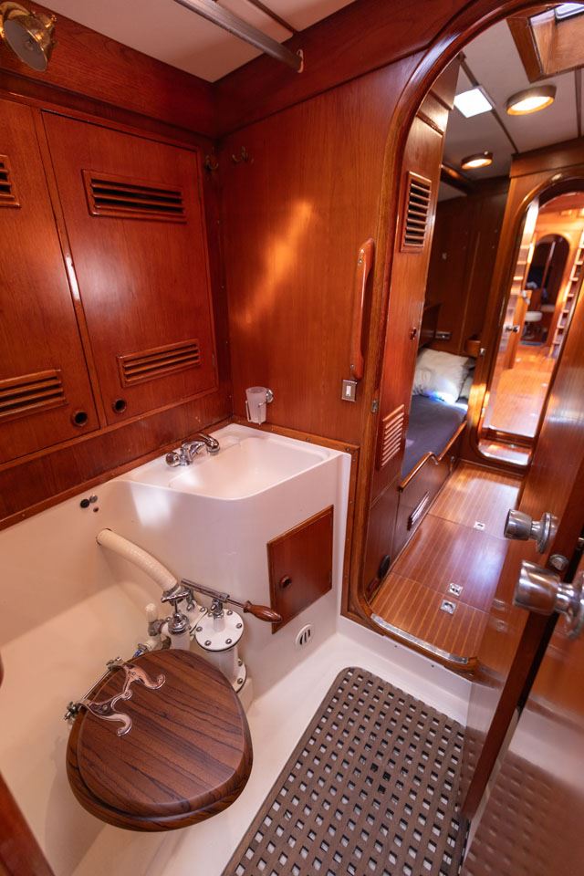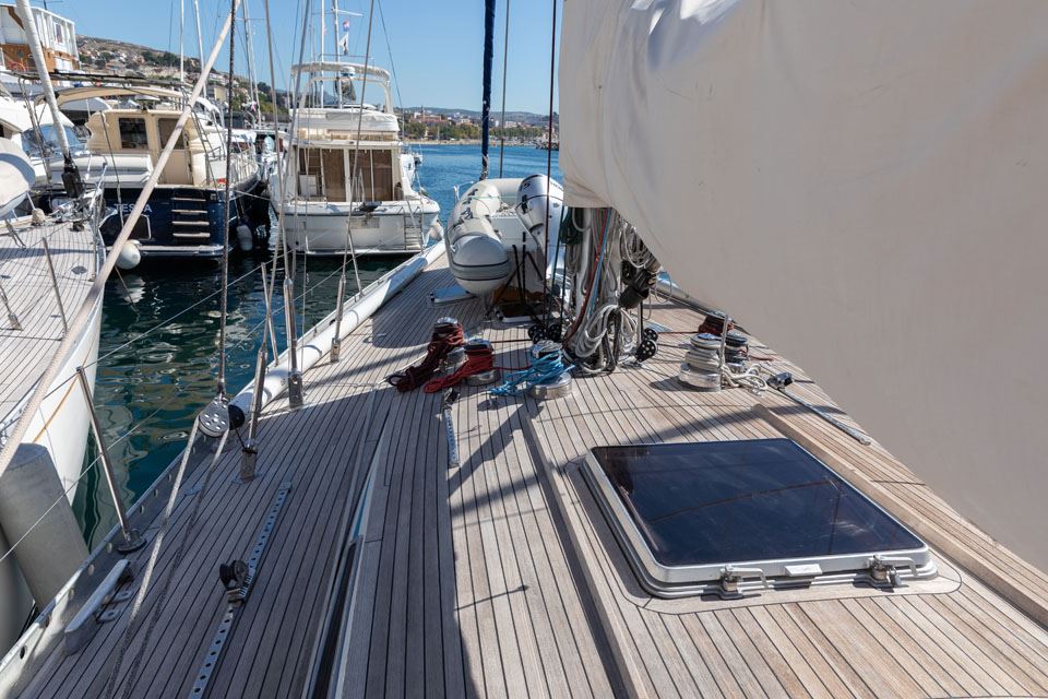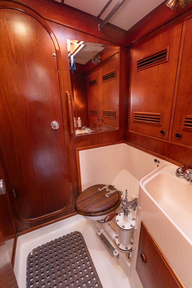 The third owner bought her in the UK via Berthon in 2012 and undertook a major refit with the idea in mind that the yacht would then offer 10 years of total reliability. Work included, re-wiring, new plumbing, and many onboard systems were replaced or refitted. However, the most important and major work was the replacement of her internal metal keelson. Efforts were taken to retain her originality – for example, she still has the original Baby Blake WCs, which were rebuilt and electrified. After this refit she had a successful cruising programme on both sides of the Atlantic.