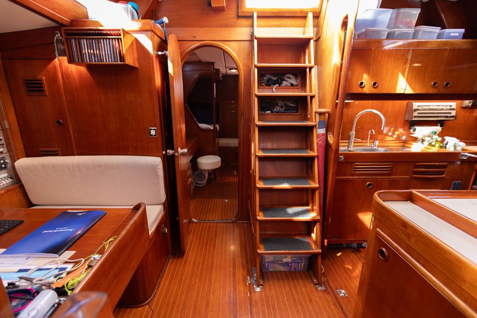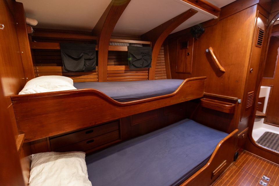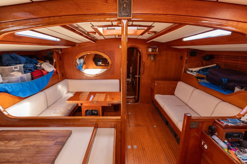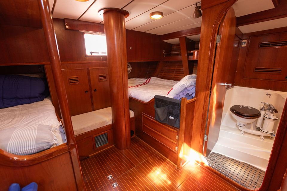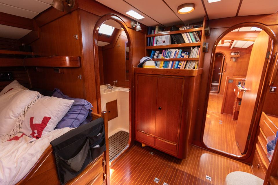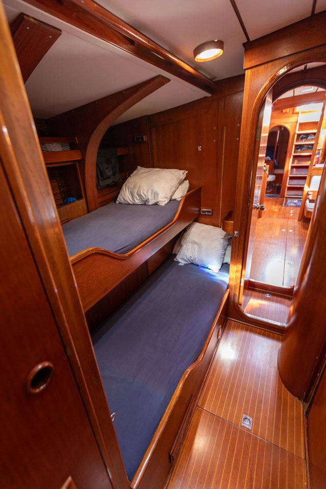 The third owner bought her in the UK via Berthon in 2012 and undertook a major refit with the idea in mind that the yacht would then offer 10 years of total reliability. Work included, re-wiring, new plumbing, and many onboard systems were replaced or refitted. However, the most important and major work was the replacement of her internal metal keelson. Efforts were taken to retain her originality – for example, she still has the original Baby Blake WCs, which were rebuilt and electrified. After this refit she had a successful cruising programme on both sides of the Atlantic.