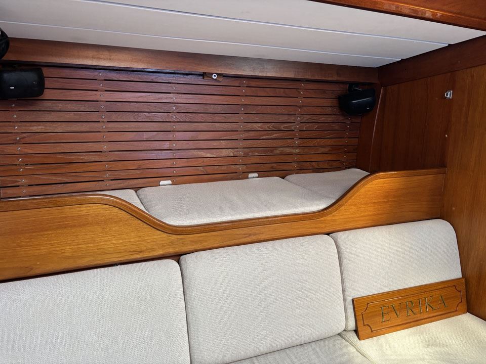 EVRIKA is a striking S&S design, built by Nautor Swan in 1982, and n°36, near the end of the series, that many believe delivered the best looking yacht in the world. EVRIKA is a special version, fitted with the mast of the sloop version and 3 tons of lead has been added to the keel. She is only in her fourth ownership. Built for an owner whose daughter campaigned her successfully on the regatta circuit for 2 years, winning the Rolex European Swan Cup in 1984, before selling her to her second owner, Richard Wright, the keyboard of the Pink Floyd group. He kept her for 25 years and used her in a purely cruising role. She sailed in the Mediterranean and the Caribbean and is a very well-known yacht.