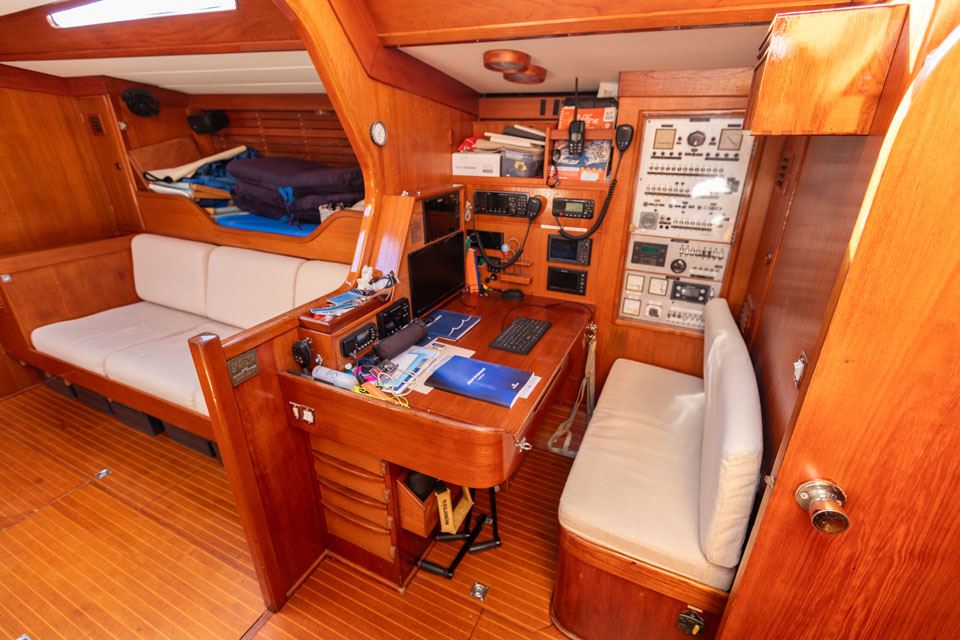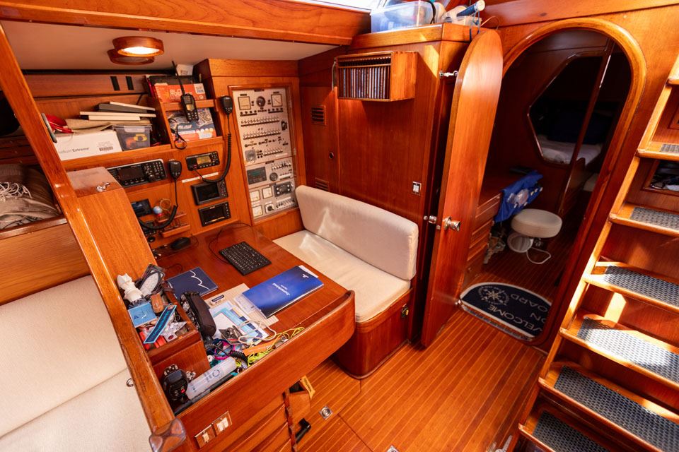 In 2019-2020 she was again in refit to prepare her for the Ocean Globe Race and the work list was very comprehensive including new teak decks, newly painted superstructure, painted deck areas and painted spars, new s/s rod rigging, and a retractable bowthruster was fitted. At that time her systems were again totally reworked, and much was replaced, including the generator. Checks included the required NDT keel, skeg and rudder inspections.