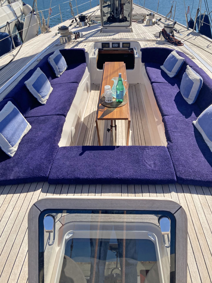 I have sailed in the Mediterranean only since bringing her down from Ireland. In addition to summer sailing, I like to enjoy the yacht at weekends and any time I have a few days free, sailing in the spring and late in the autumn.